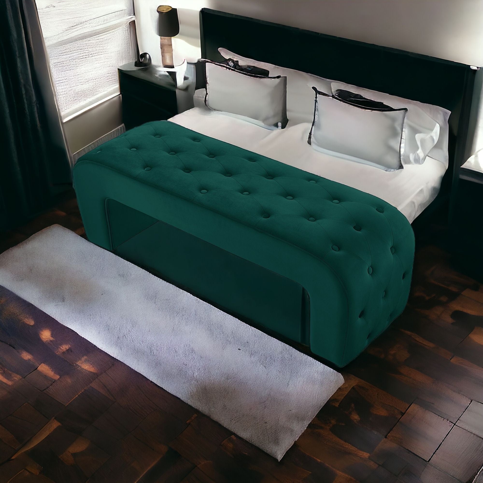- Bedroom bench is used as an extra place for seating. Often placed at the end of the bed for help in getting organized and dressed.