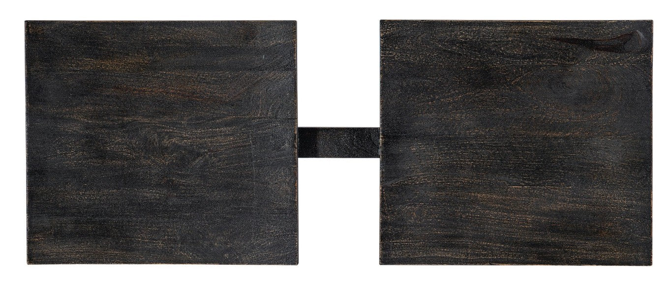- Finish: Distressed black wood finish with transparent topcoat; intentional distressing and transparency highlight the wood’s natural texture and create a one-of-a-kind appearance.