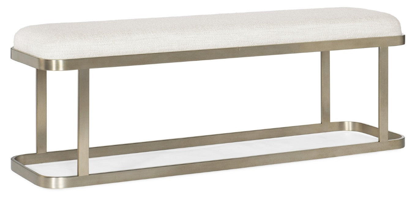 Add a touch of modern elegance and everyday comfort to your entryway, bedroom, or living space with this tailored upholstered bench. The River Branch bench pairs a soft, performance-grade fabric seat with a refined champagne-finished metal base for a look that’s both contemporary and inviting. Durable materials and clean lines make it ideal for seating, dressing, or accenting your décor.