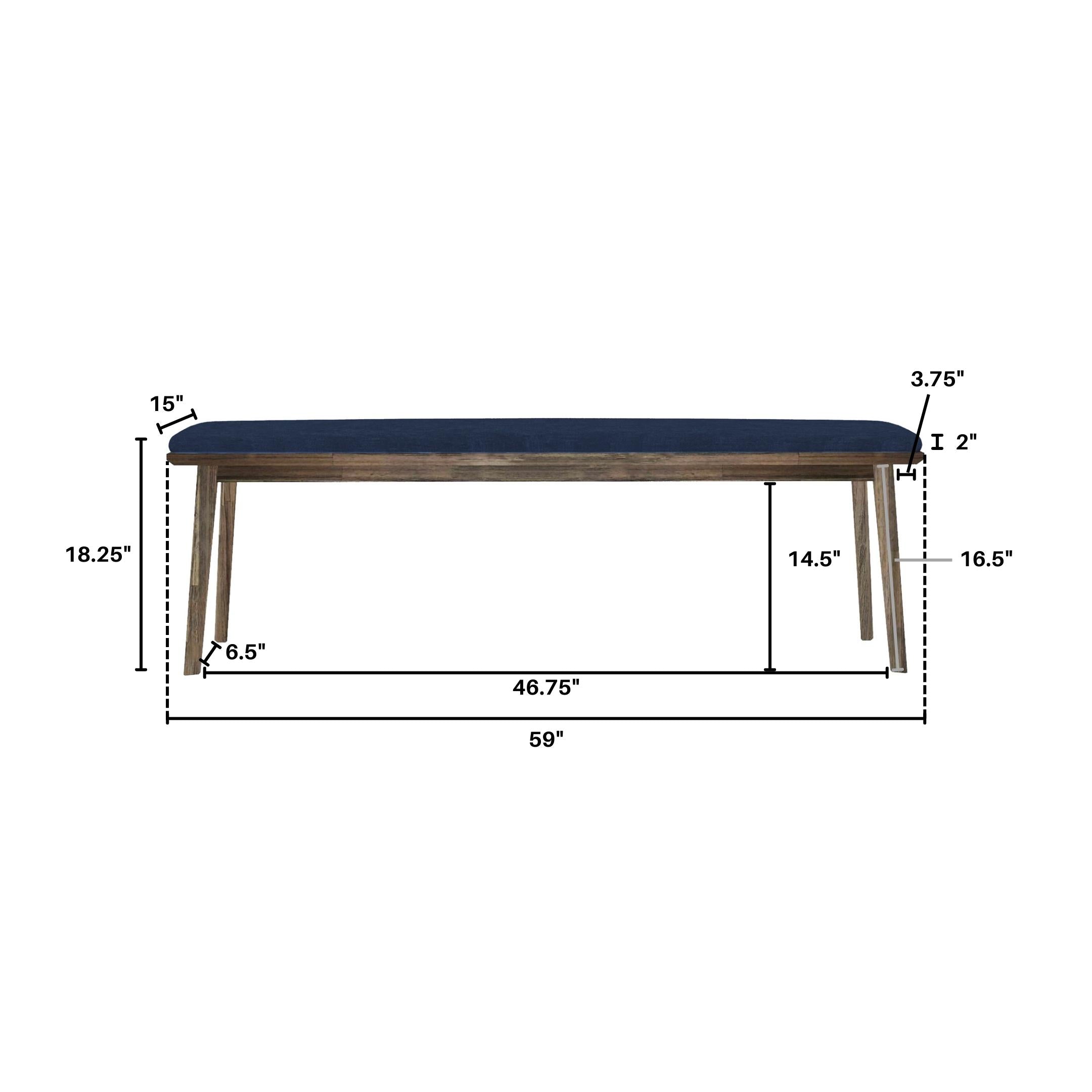 - Additional Dimensions WDH":: Overhang (short side): 3.75; Floor to underneath bench: 14.5; Leg height: 16.5; Top Thickness: 2; Between legs (long side): 46.75; Between legs (short side): 6.5;