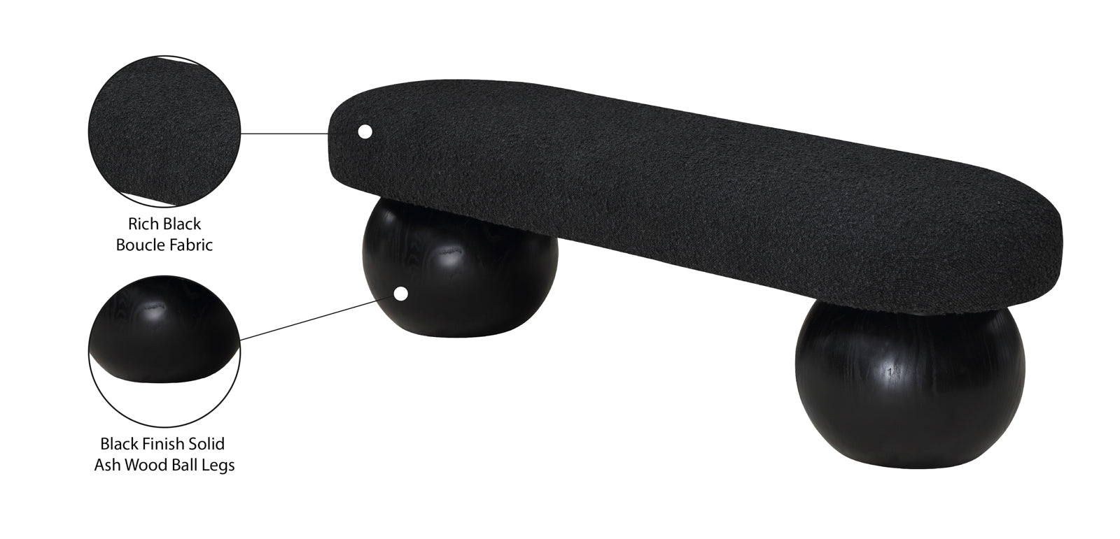 - Material: 22043Black Bowie Black Bench - Boucle Fabric / Ash wood / Plywood with Black