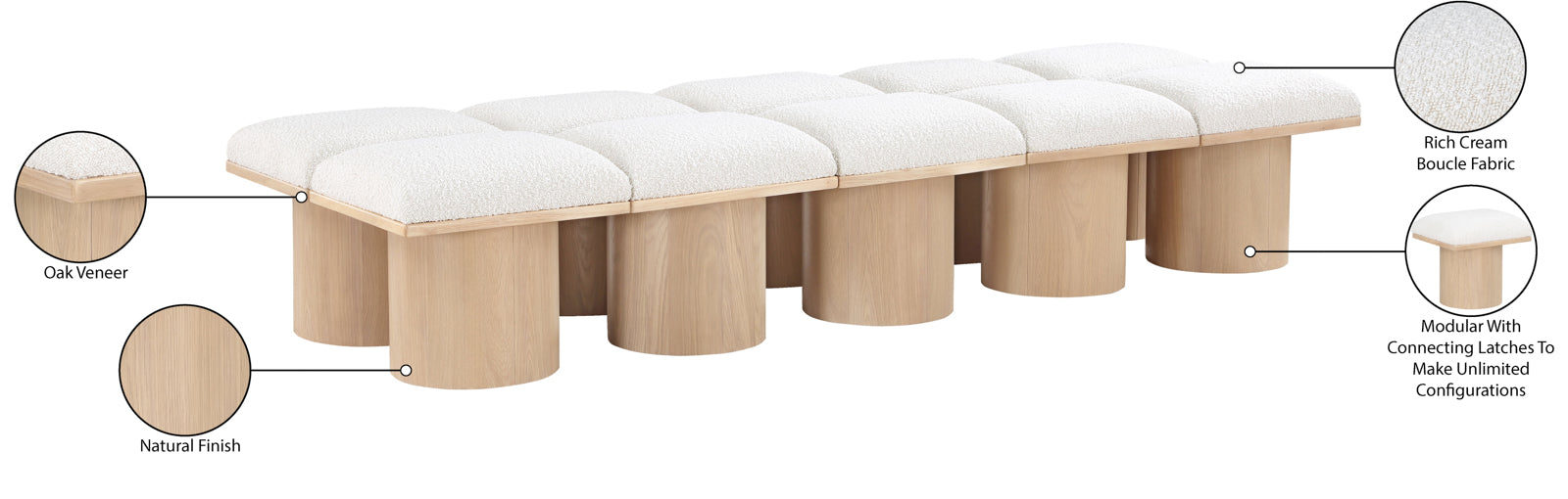 - Material: 465Black-10C Pavilion Black Boucle Fabric Bench - Boucle Fabric / Plywood with Oak Veneer with Natural Finish