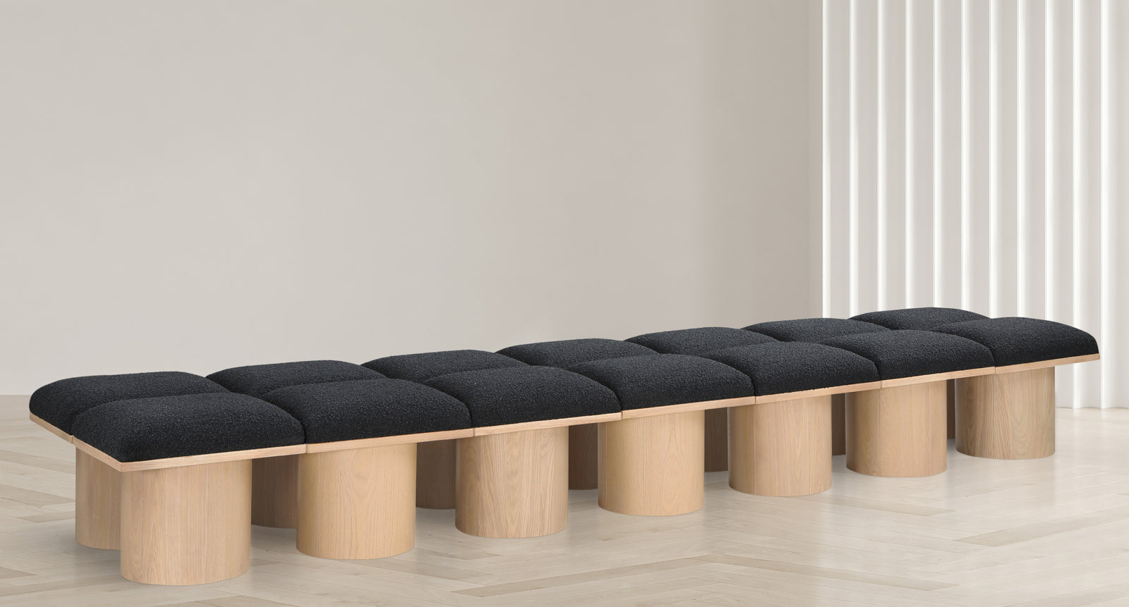 - Material: 465Black-14C Pavilion Black Boucle Fabric Bench - Boucle Fabric / Plywood with Oak Veneer with Natural Finish