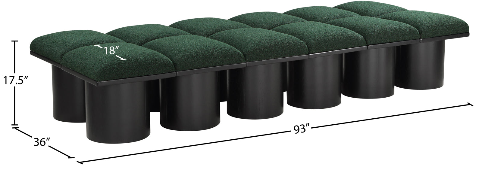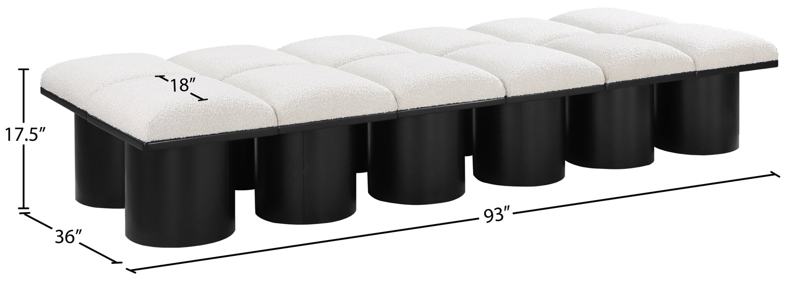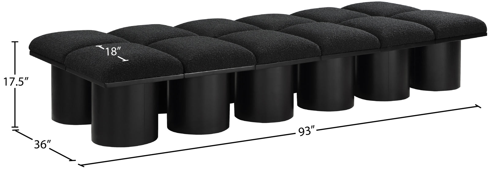 - Dimensions: 466Black-12D Pavilion Black Boucle Fabric Bench - 93" W x 36" D x 17.5" H
