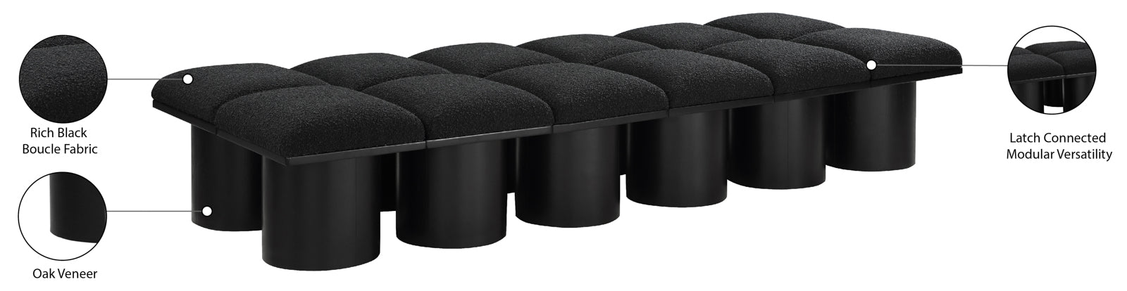 - Material: 466Black-12D Pavilion Black Boucle Fabric Bench - Boucle Fabric / Plywood with Oak Veneer with Black Finish