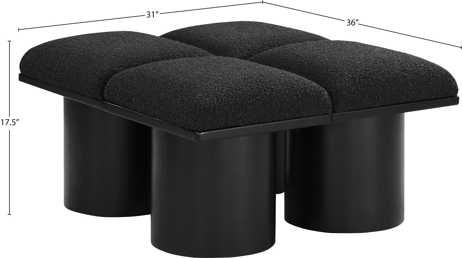 - Dimensions: 466Black-4D Pavilion Black Boucle Fabric Bench - 31" W x 36" D x 17.5" H