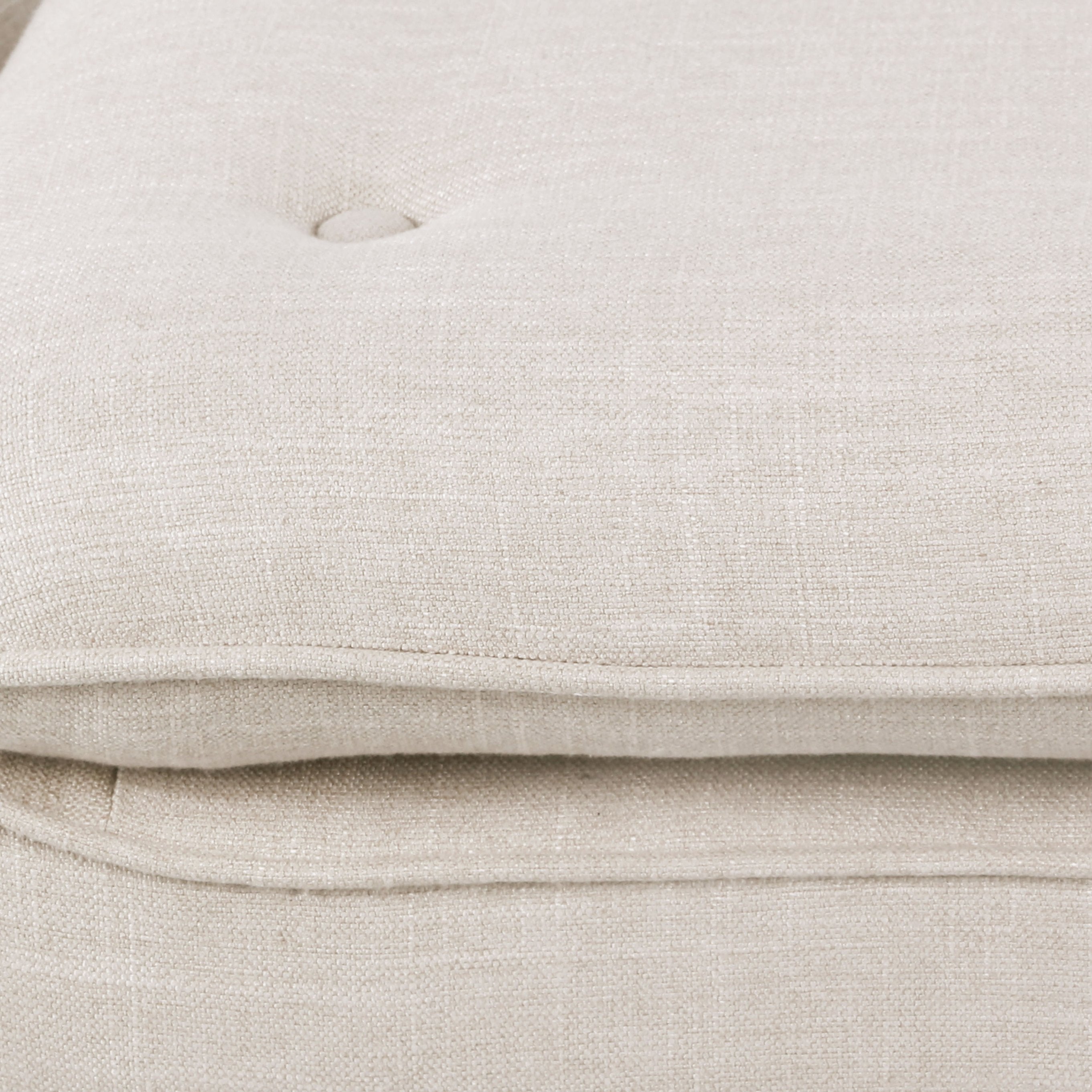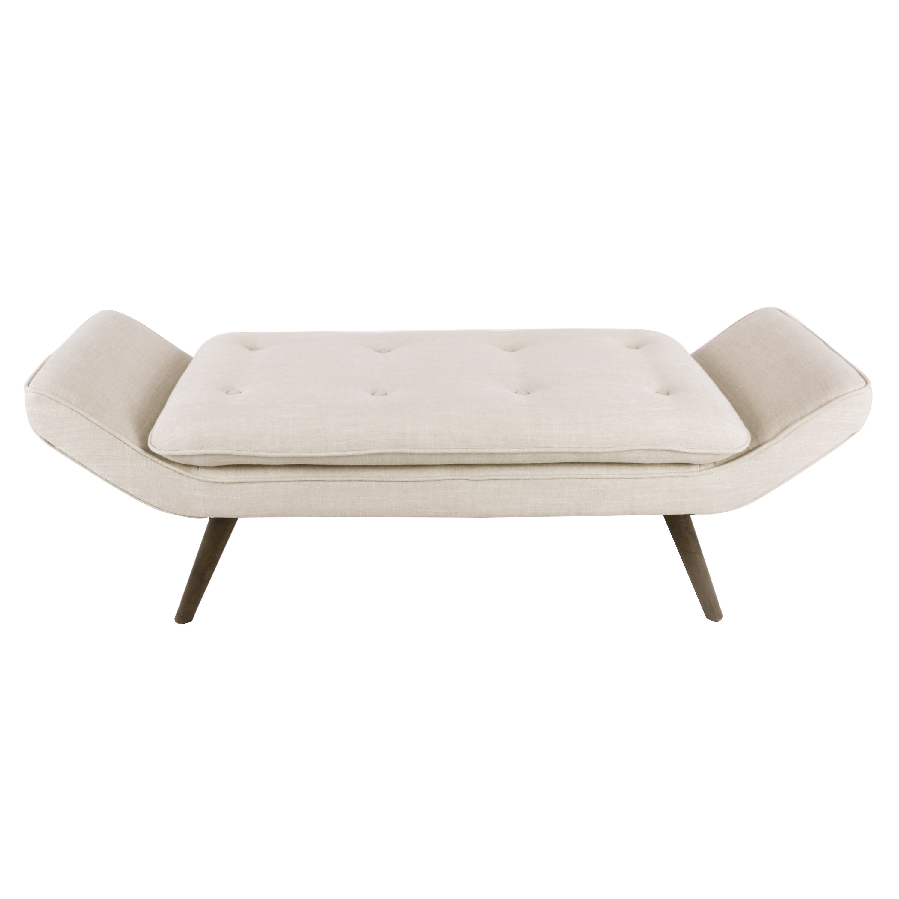 - RETRO ELEGANCE - Mid-century geometric shaped bench with charming button tufted upholstery provides comfort and convenience in one. Splayed solid Rubber wood legs provide sturdiness and durability.