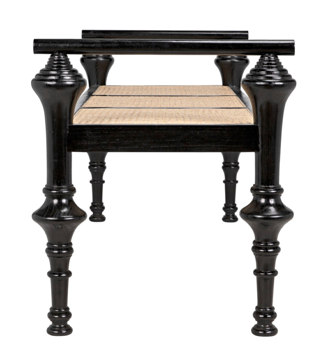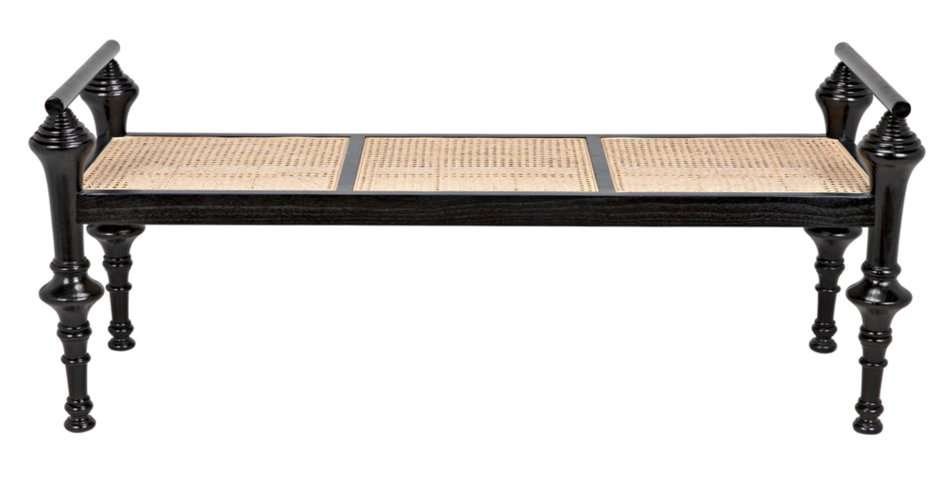 Casually sophisticated with a design-driven silhouette, this bench blends timeless craftsmanship and relaxed elegance to complement modern or transitional interiors. The warm mindi wood frame and hand-woven caning create a refined, textural seat that reads equally well at the foot of a bed, in an entryway, or alongside a dining table as extra seating.