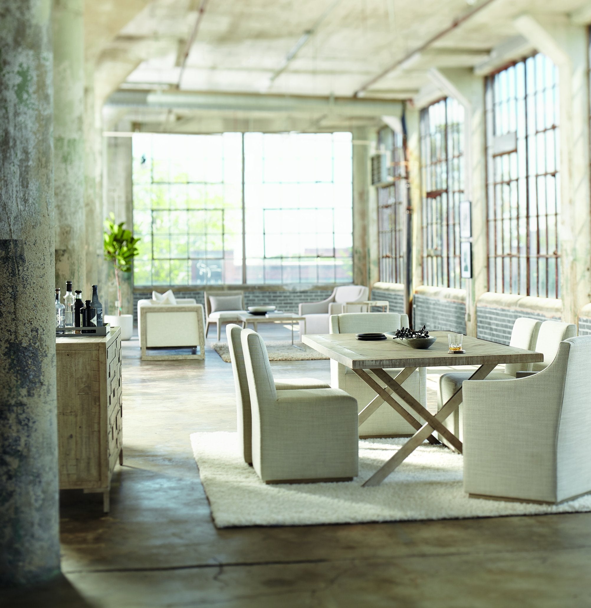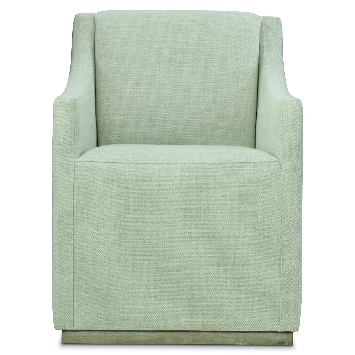 The Casey arm chair blends farmhouse warmth with mid-century simplicity to create a versatile, refined seating option. Its stitched slipcover-style upholstery and sloped arms give a relaxed yet tailored look, while the Morel-finished plinth base and heavy-duty casters make it both stylish and practical for everyday use.