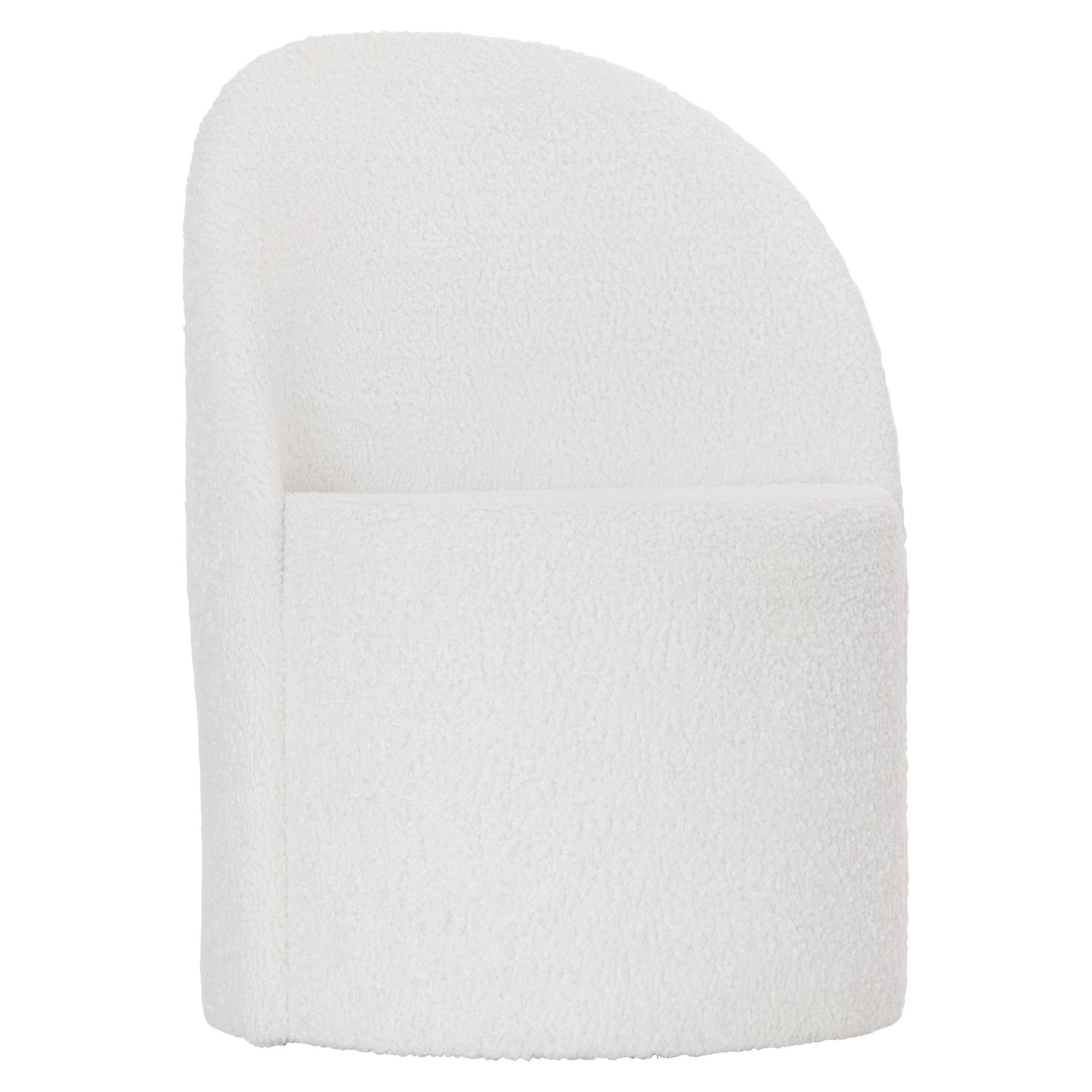 - Fully upholstered arm chair with rounded, wraparound back that sweeps to the floor for a seamless silhouette