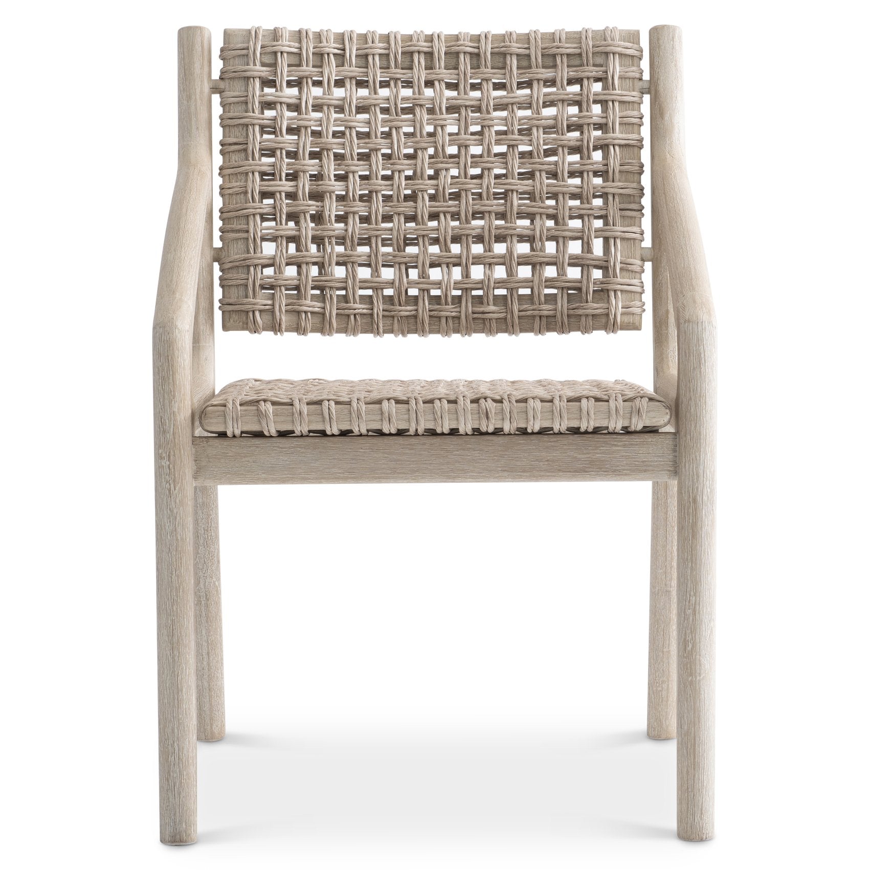 Enjoy relaxed, refined outdoor living with the Bernhardt Atlas Outdoor Arm Chair. Thoughtfully designed, this chair pairs a sleek teak frame with a distinctive open-weave all-weather wicker to create a sophisticated yet durable seating option for patios, decks, and poolside lounges. Clean lines and quality materials deliver comfort and lasting style, while optional cushions allow you to customize the look and feel.