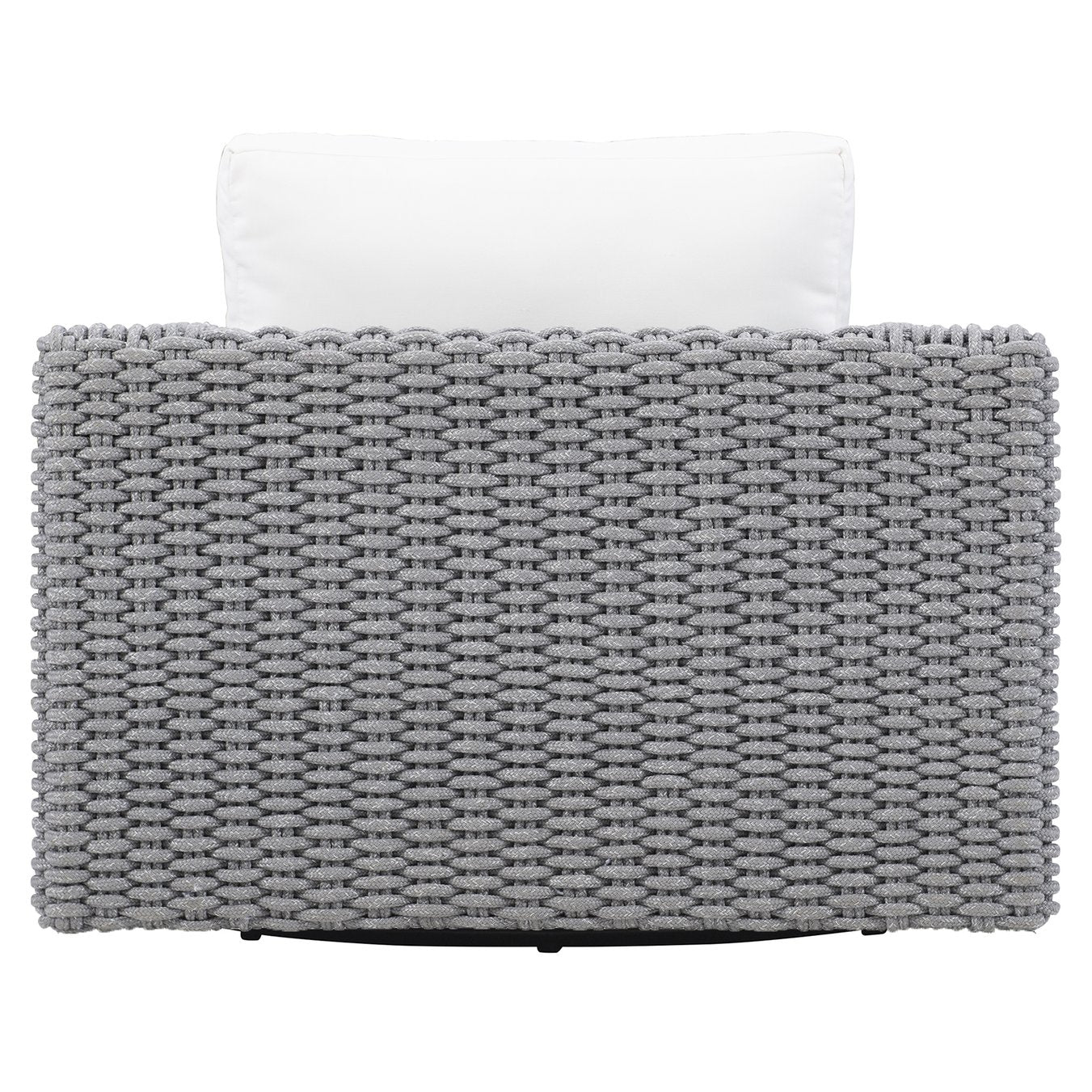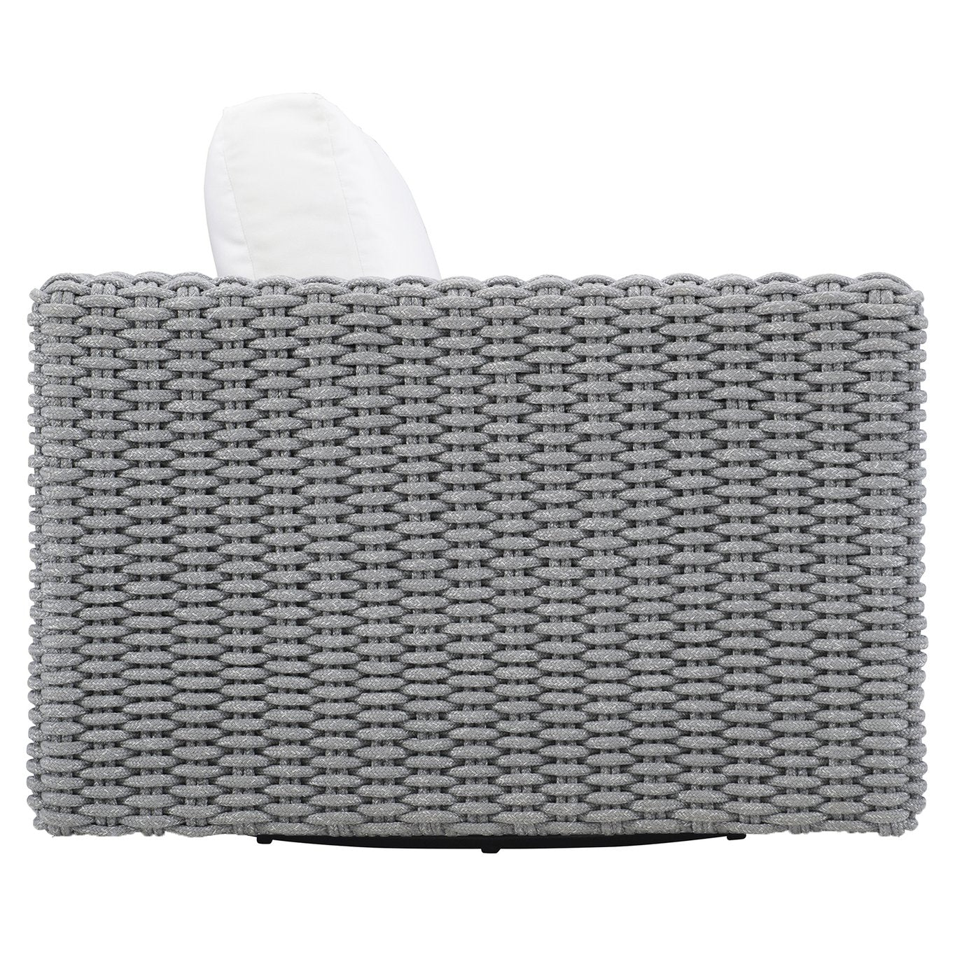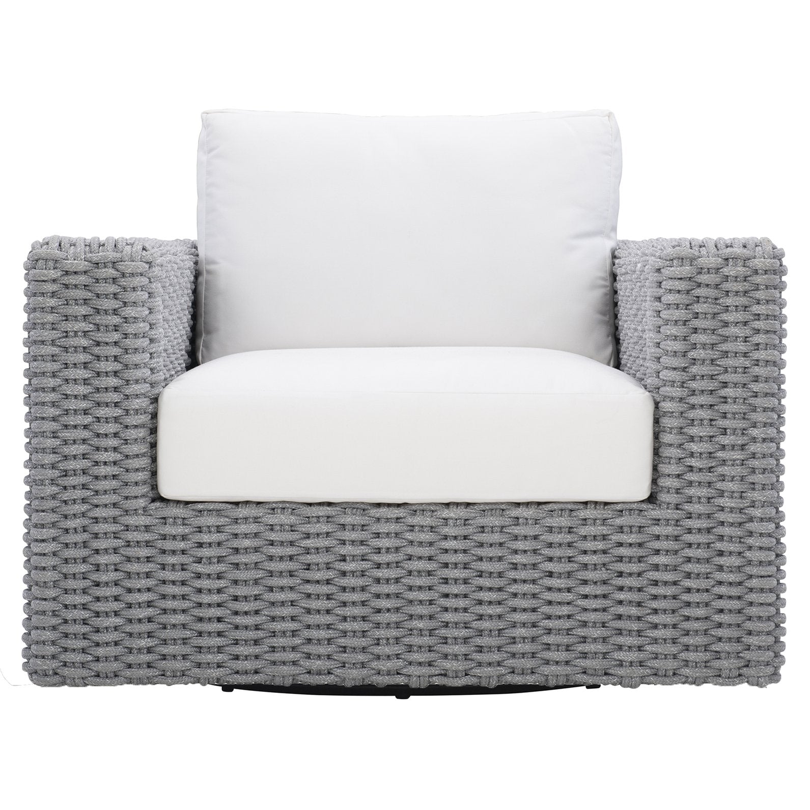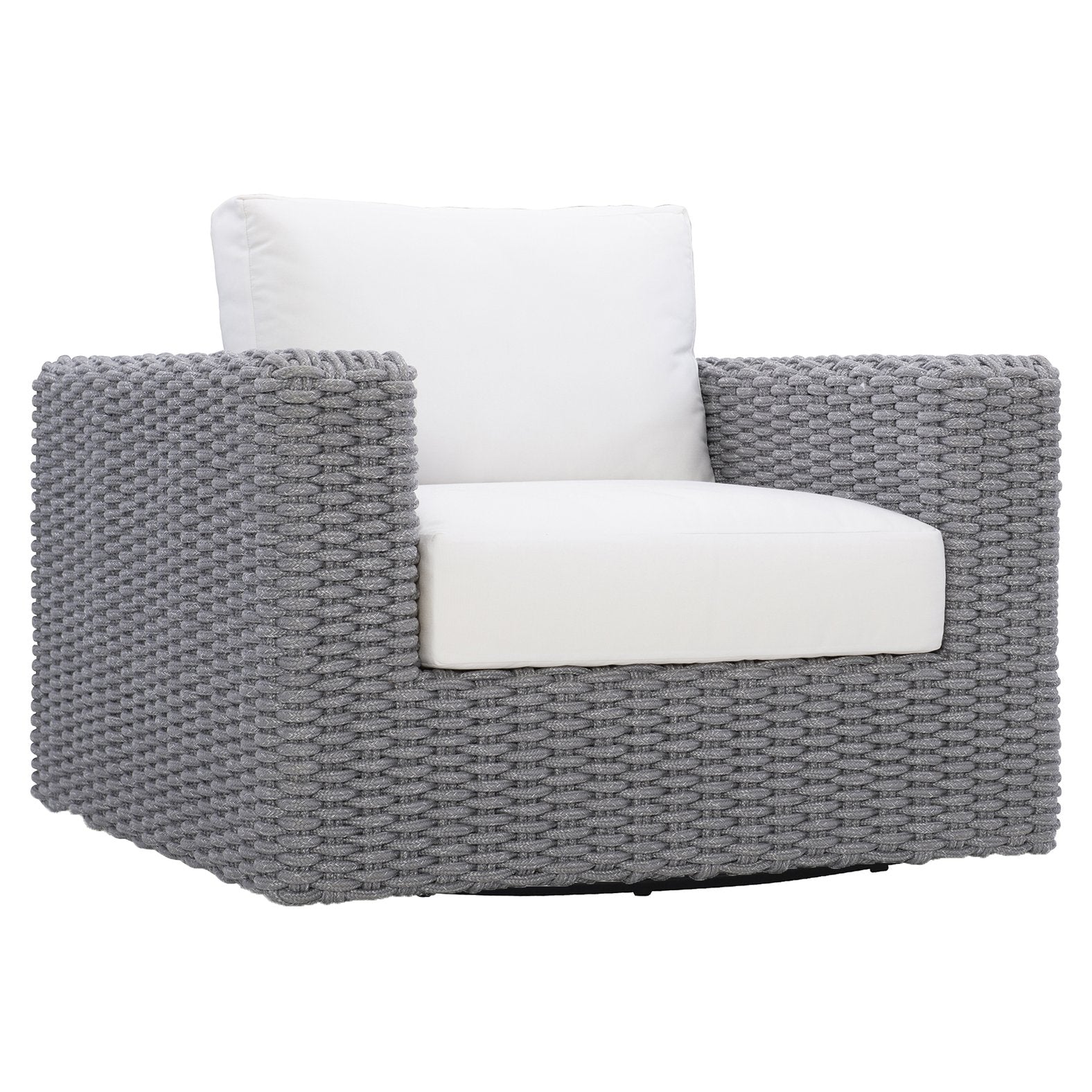 Bring indoor comfort to your outdoor living space with the Bernhardt Capri outdoor swivel chair — a refined seating solution that pairs modern lines with weather-ready construction. Designed for relaxation and style, this chair features plush, quick-dry cushions and a handcrafted woven rope base that rotates smoothly, making it ideal for patios, poolside lounges, or covered terraces.