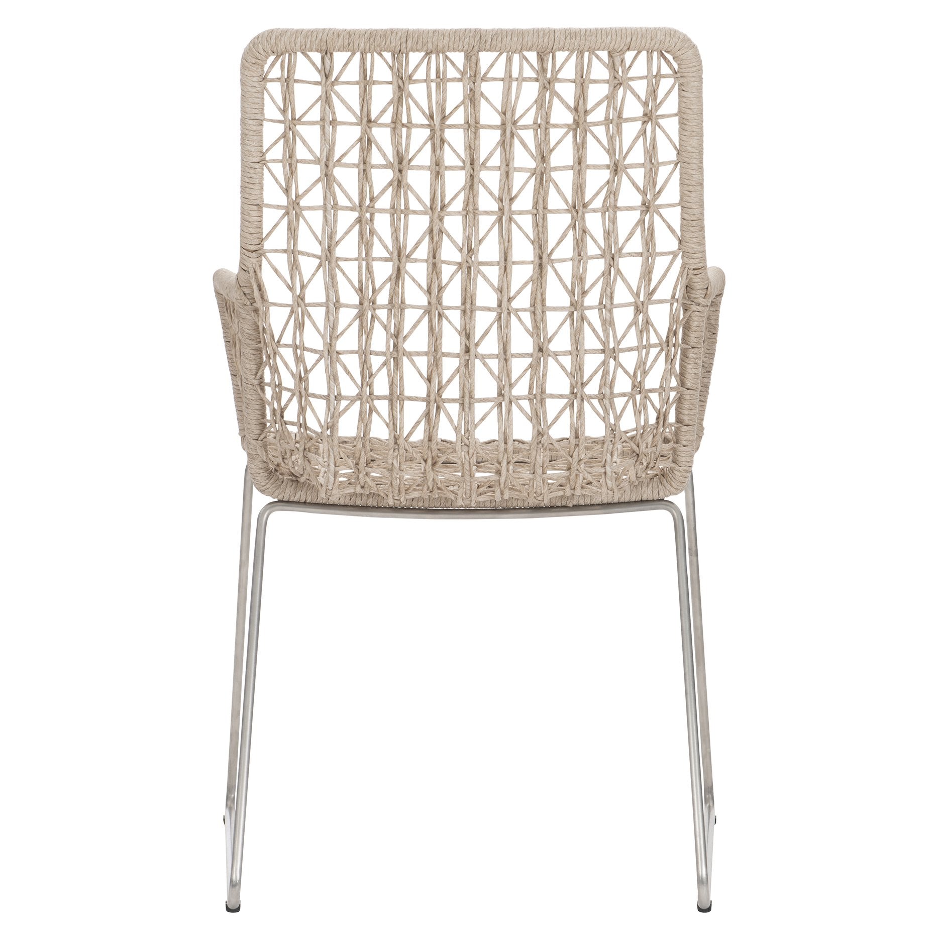 Experience the Bernhardt Carmel Outdoor Arm Chair — a refined blend of sculptural design and durable outdoor performance. Its open twisted-abaca weave creates a distinctive visual texture while delivering ergonomic support for relaxed seating. Built to bridge indoor elegance and outdoor resilience, this chair pairs a corrosion-resistant stainless steel base with weather-ready All-Weather Wicker for long-lasting style.