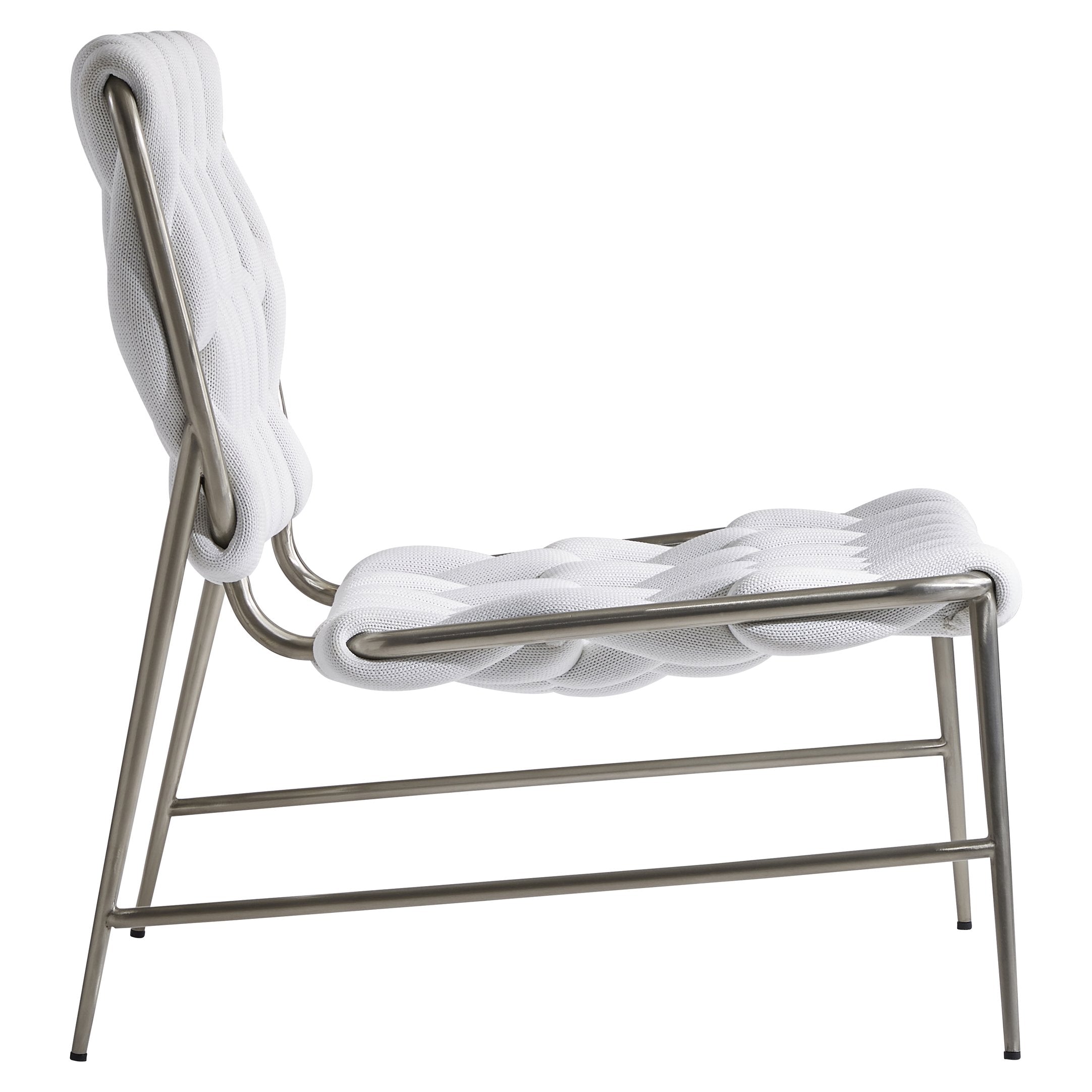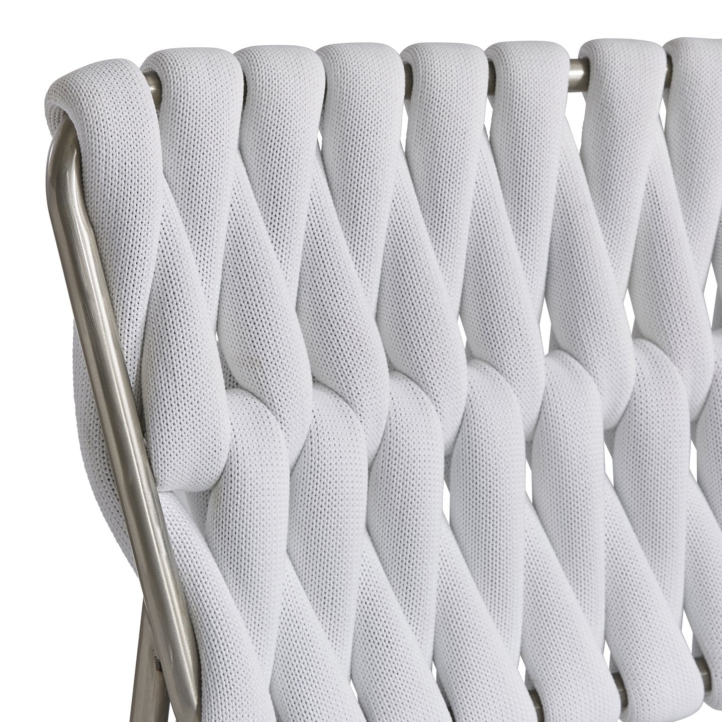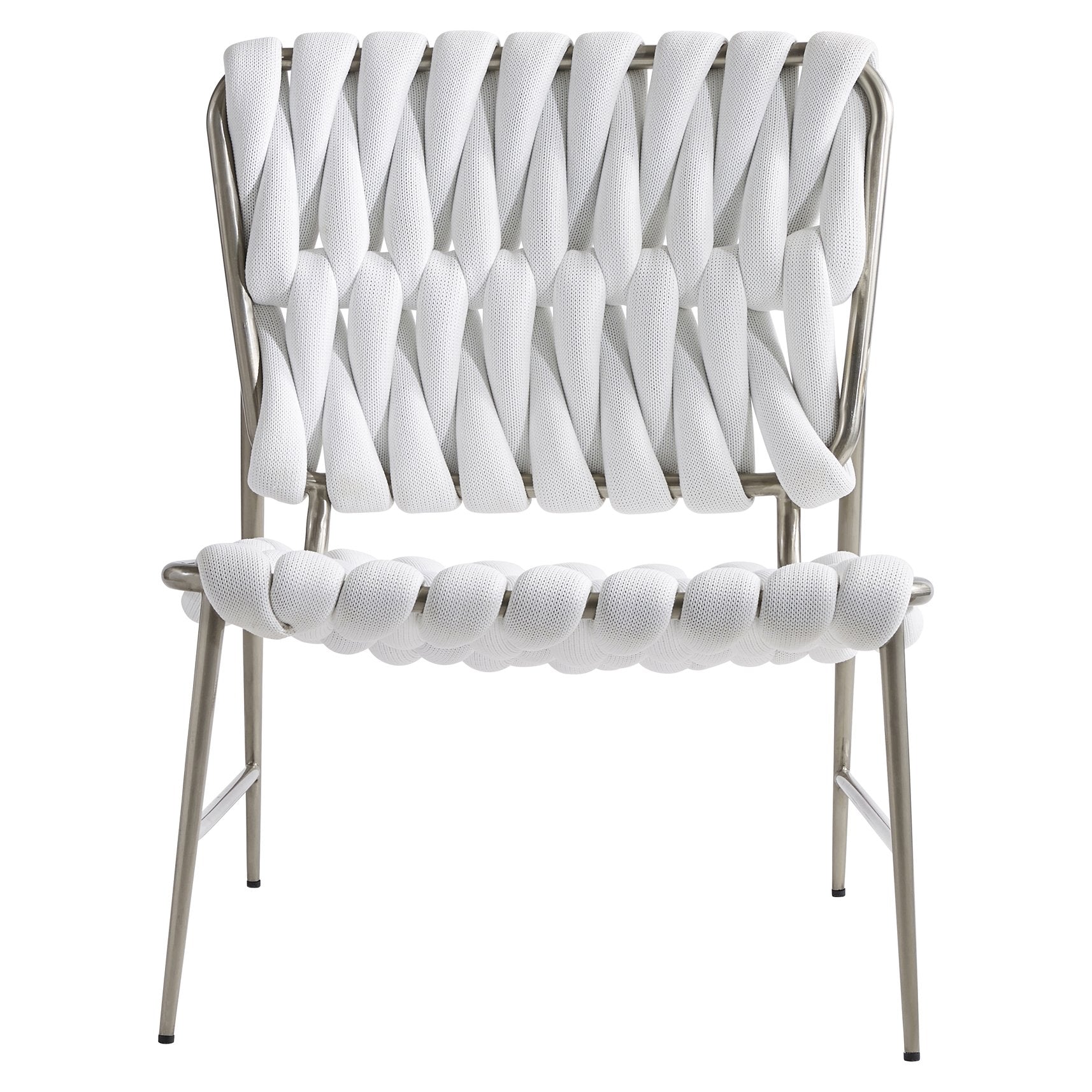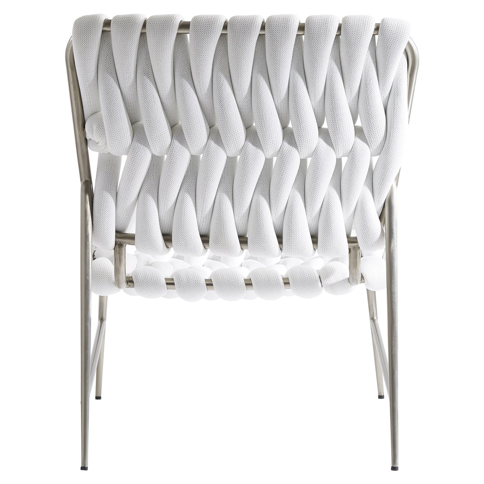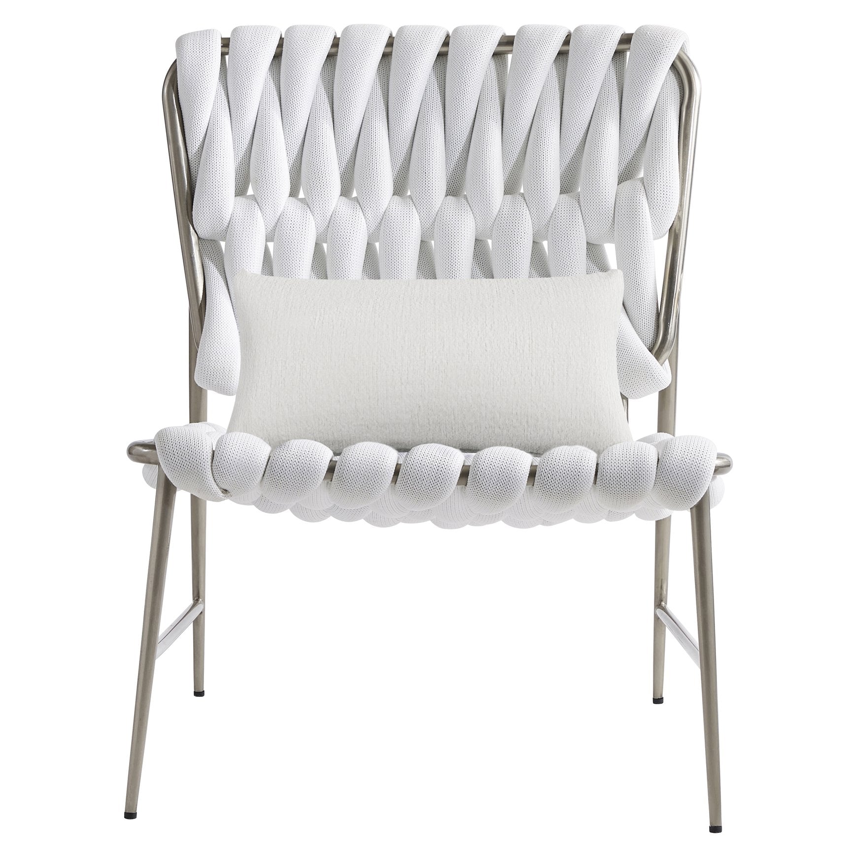 Invite modern comfort to your outdoor living space with this distinctive lounge chair that blends durable materials and sculptural design. The generously contoured stainless steel frame and supportive filled-rope weave create an airy, resilient seat perfect for patios, decks, or poolside settings. Finished in a crisp Egret White and complemented by a tailored knife-edge pillow, this chair balances weather-ready performance with refined style.