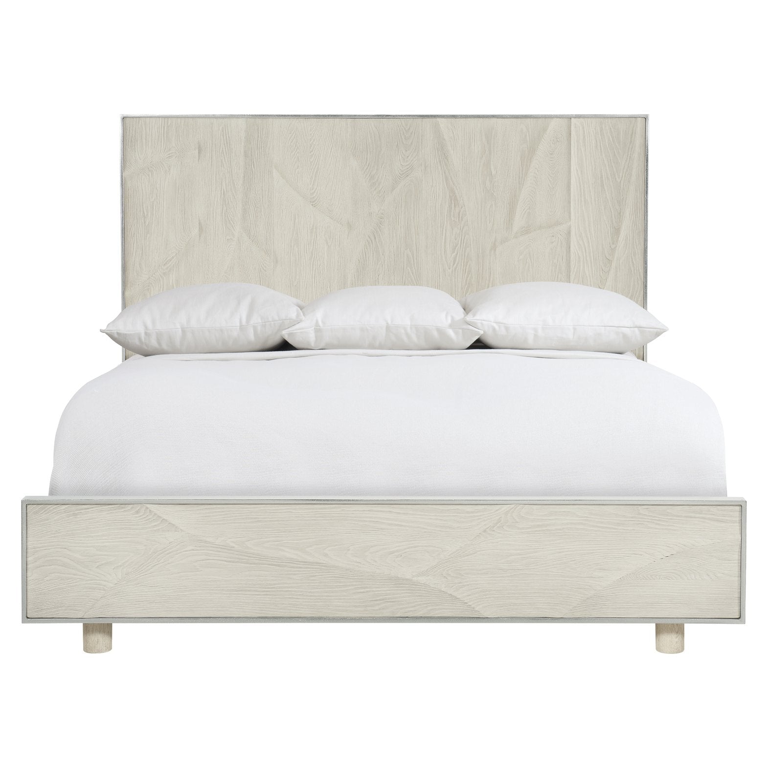 Elevate your bedroom with a modern, minimalist centerpiece that highlights natural wood grain and refined metallic accents. The Alvarez panel bed balances clean lines and tactile detail—cast aluminum frames with a shiny nickel finish, cast resin overlay panels, and a raised profile on cylindrical feet—creating a sophisticated focal point that complements contemporary interiors.