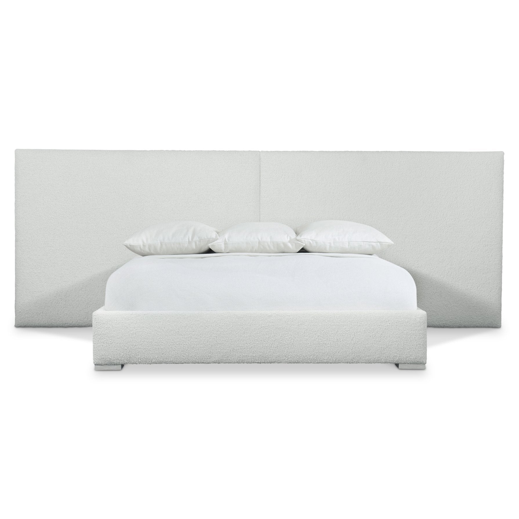 - Design: Dual headboard panels upholstered in B582 fabric that connect at the center to form a single, dramatic panel