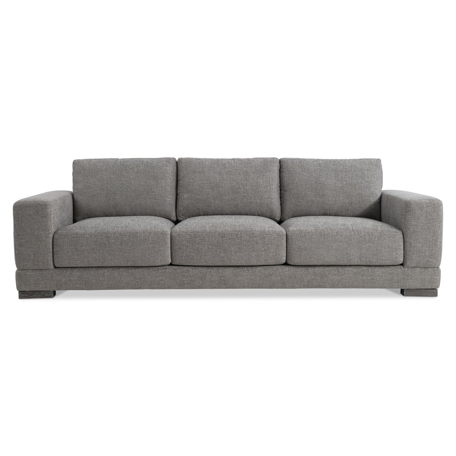 - Style: Modern silhouette with softened straight lines and wide track arms