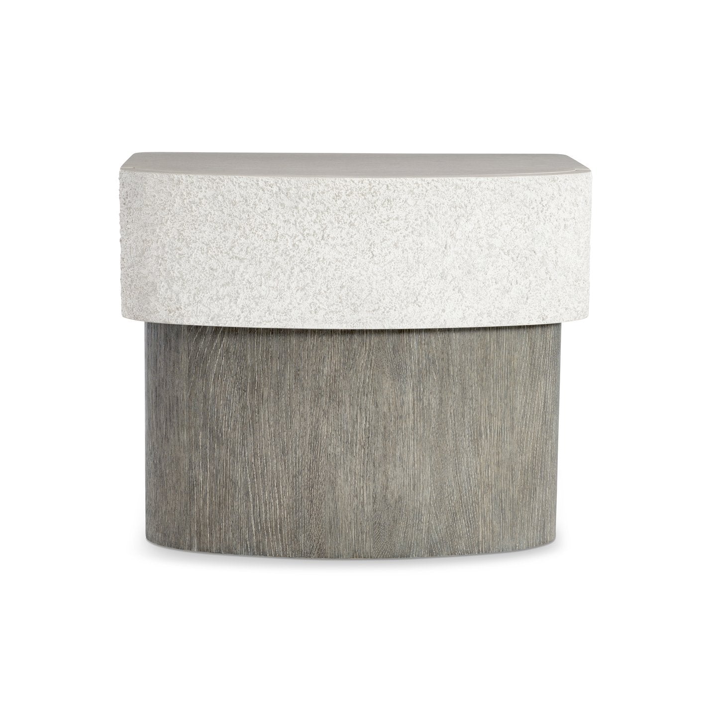 Elevate your bedroom with a sculptural nightstand that balances bold presence and refined detail. The Monolith nightstand combines tactile materials and thoughtful functionality—softened edges, a faux stone top, and a wire-brushed oak base—creating a calm, organic focal point beside your bed. Its single soft-close drawer with a hidden finger pull keeps the silhouette clean while providing convenient storage.