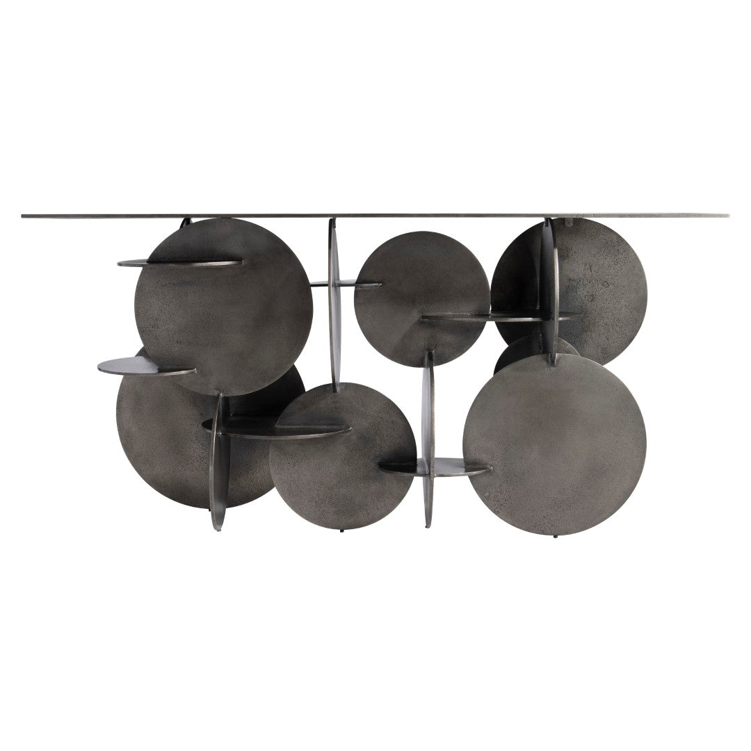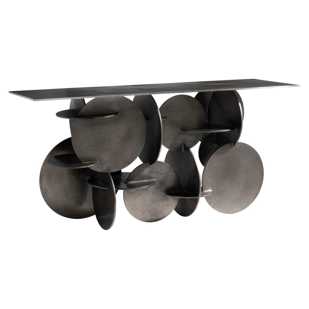 - Base made of varied sizes of intersecting vertical and horizontal flat disks