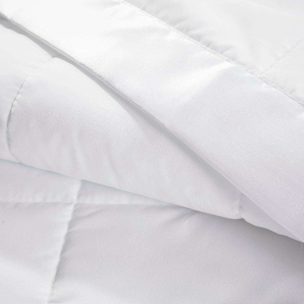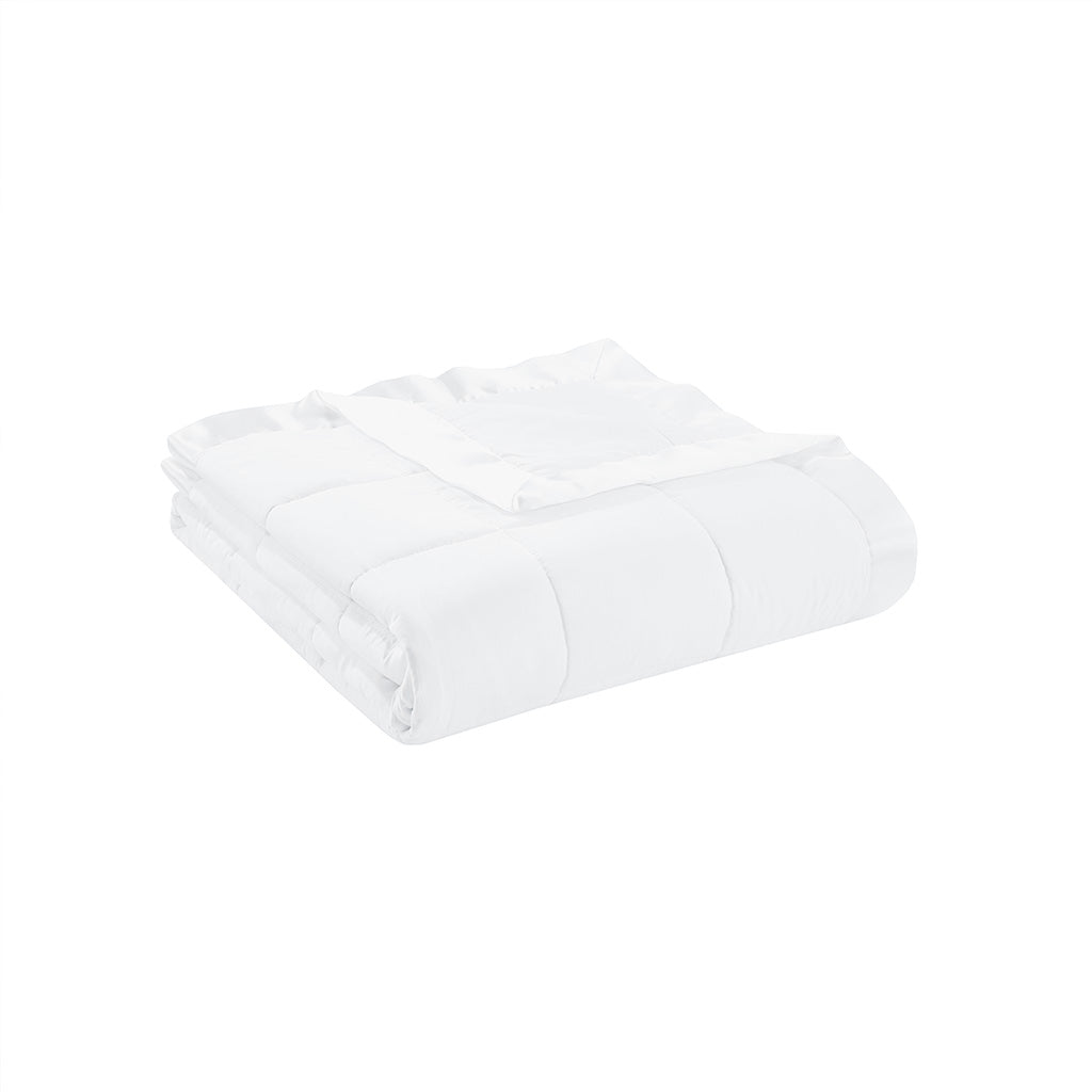 Wrap yourself in lightweight, breathable comfort with this down-alternative blanket finished with a luxurious satin trim. Designed for year-round use, it combines cozy warmth with moisture-wicking performance and hypoallergenic safety, making it an ideal choice for sensitive sleepers, dorm rooms, or guest bedding. The elegant satin binding adds a refined touch while the easy-care construction keeps upkeep simple.