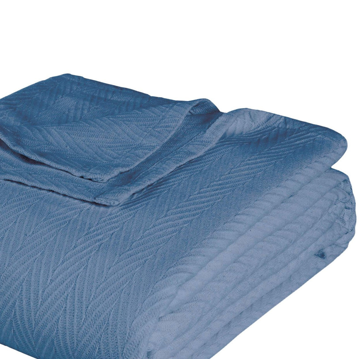 - Modern style woven cotton throw/blanket in denim blue, perfect for the bedroom.