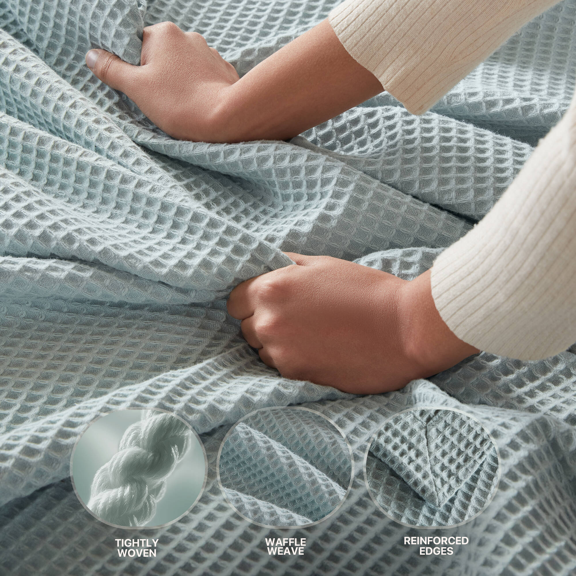 - Weave & Texture: Tightly woven waffle weave provides a refined texture, reduces pilling, and maintains shape