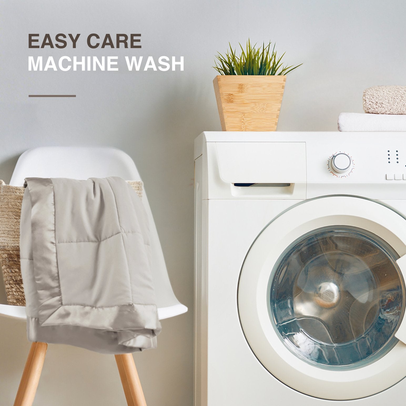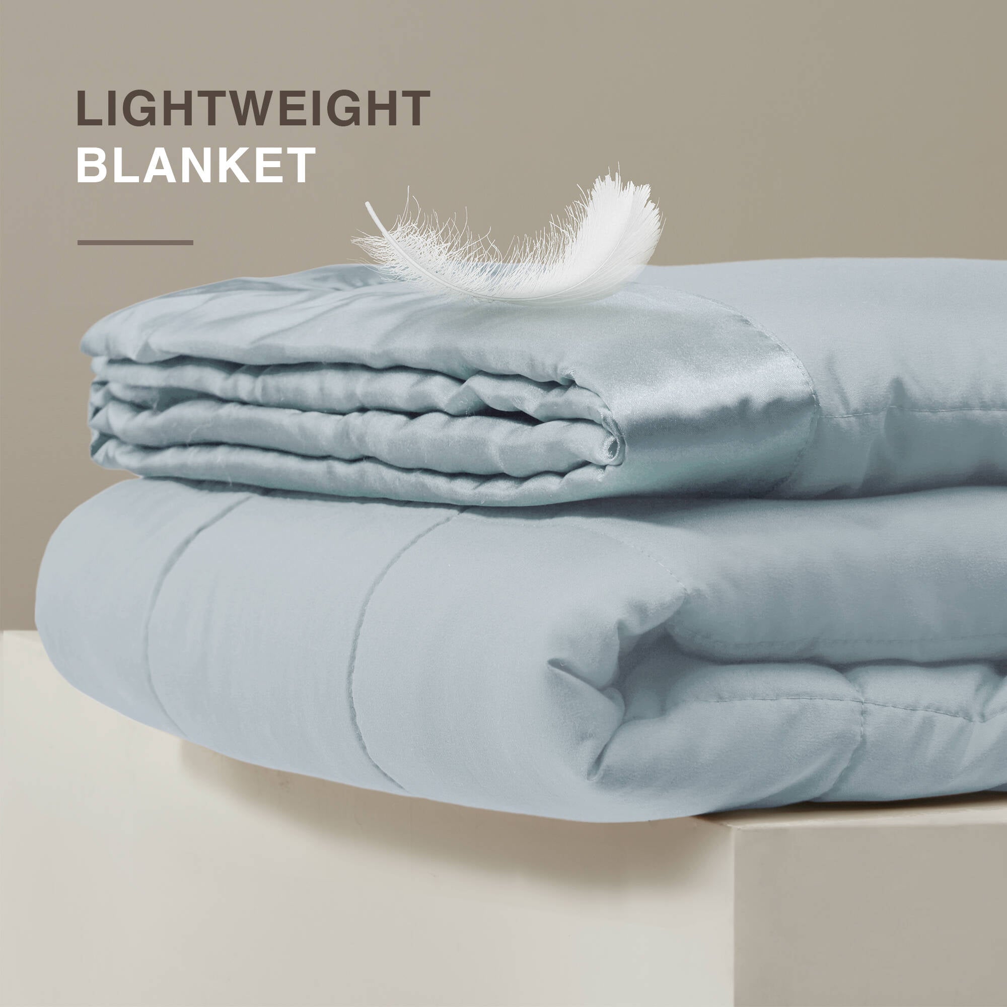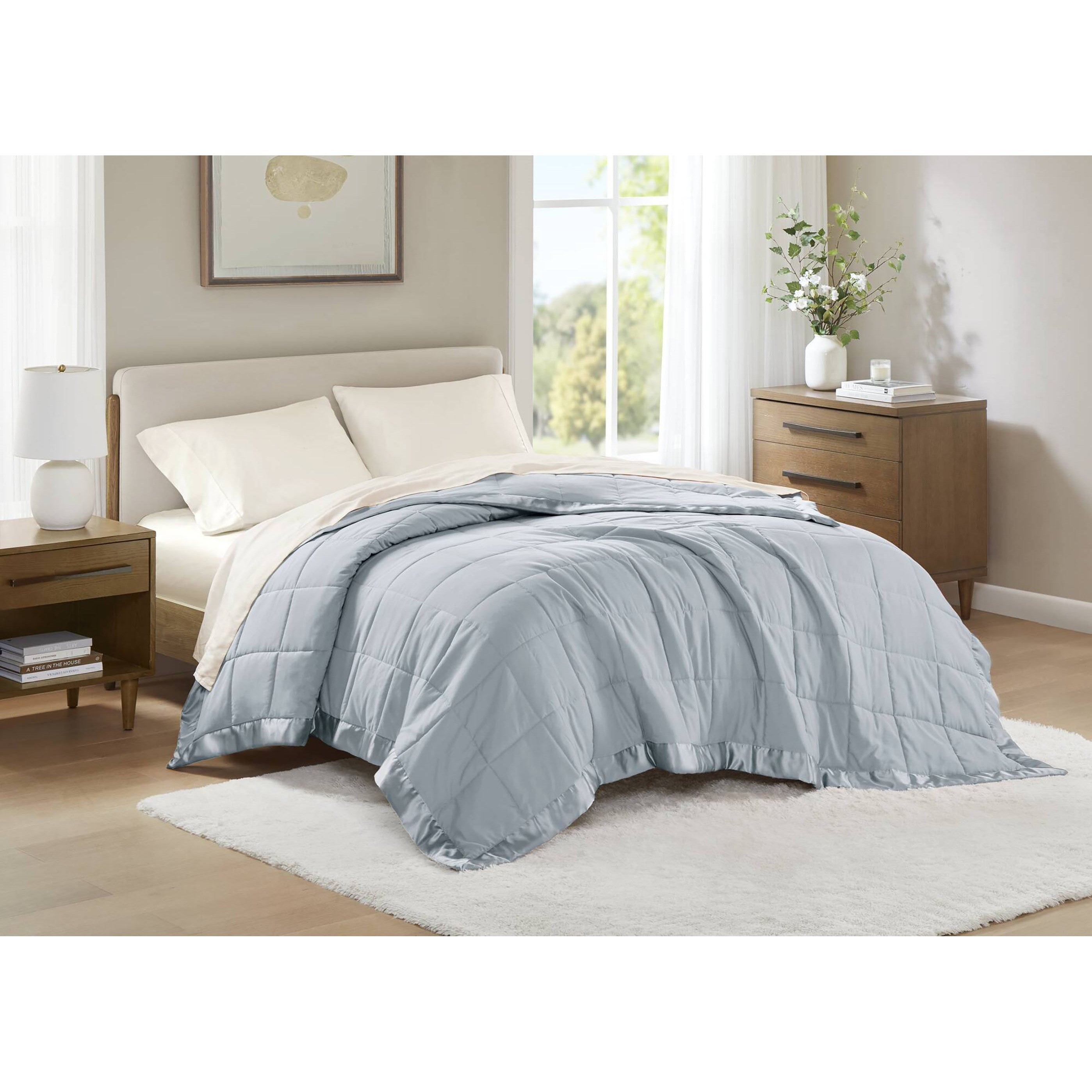 Wrap yourself in lightweight, year-round comfort with this down alternative blanket that blends softness, breathability, and easy care. Thoughtful details like a satin trim and moisture-managing treatment make it both luxurious to the touch and practical for daily use, while hypoallergenic and safety certifications ensure peace of mind.