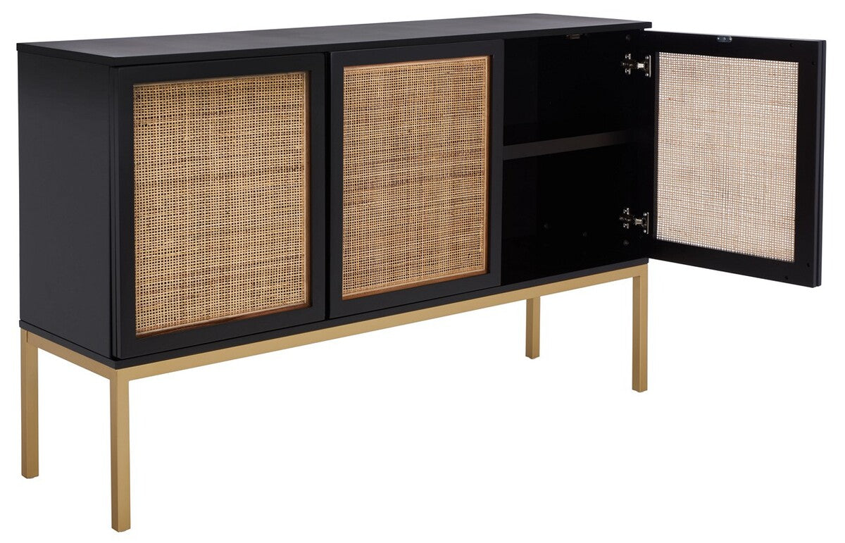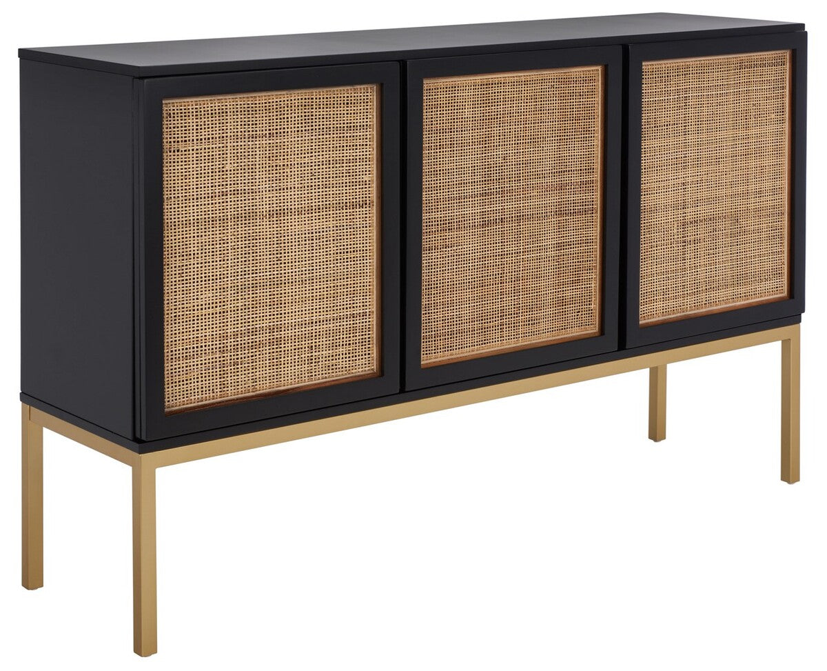 This Zadie Sideboard was perfectly styled to refresh your décor with modern coastal flair. Zadie’s black Parson’s-inspired frame is beautifully offset by the organically woven natural rattan details on its three doors, providing ample storage in any contemporary living space.