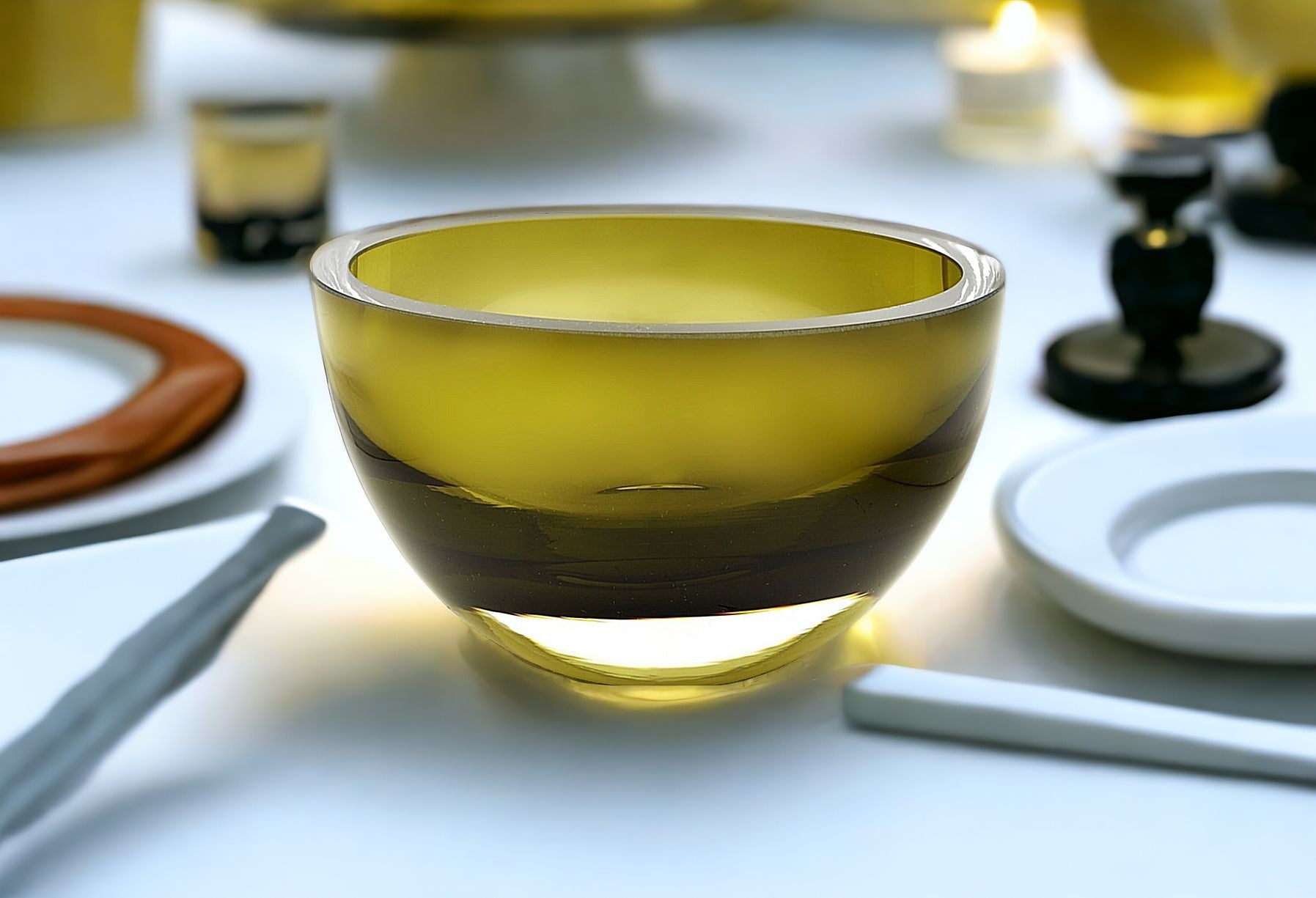 - Gorgeous and colorful heavy sham European glass candy or nut bowl.