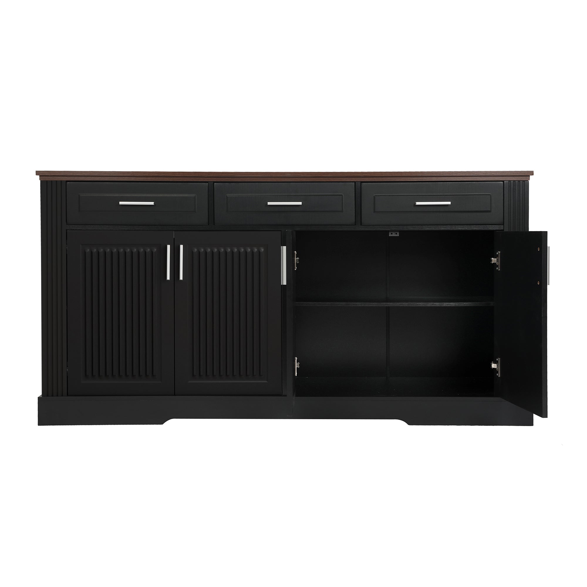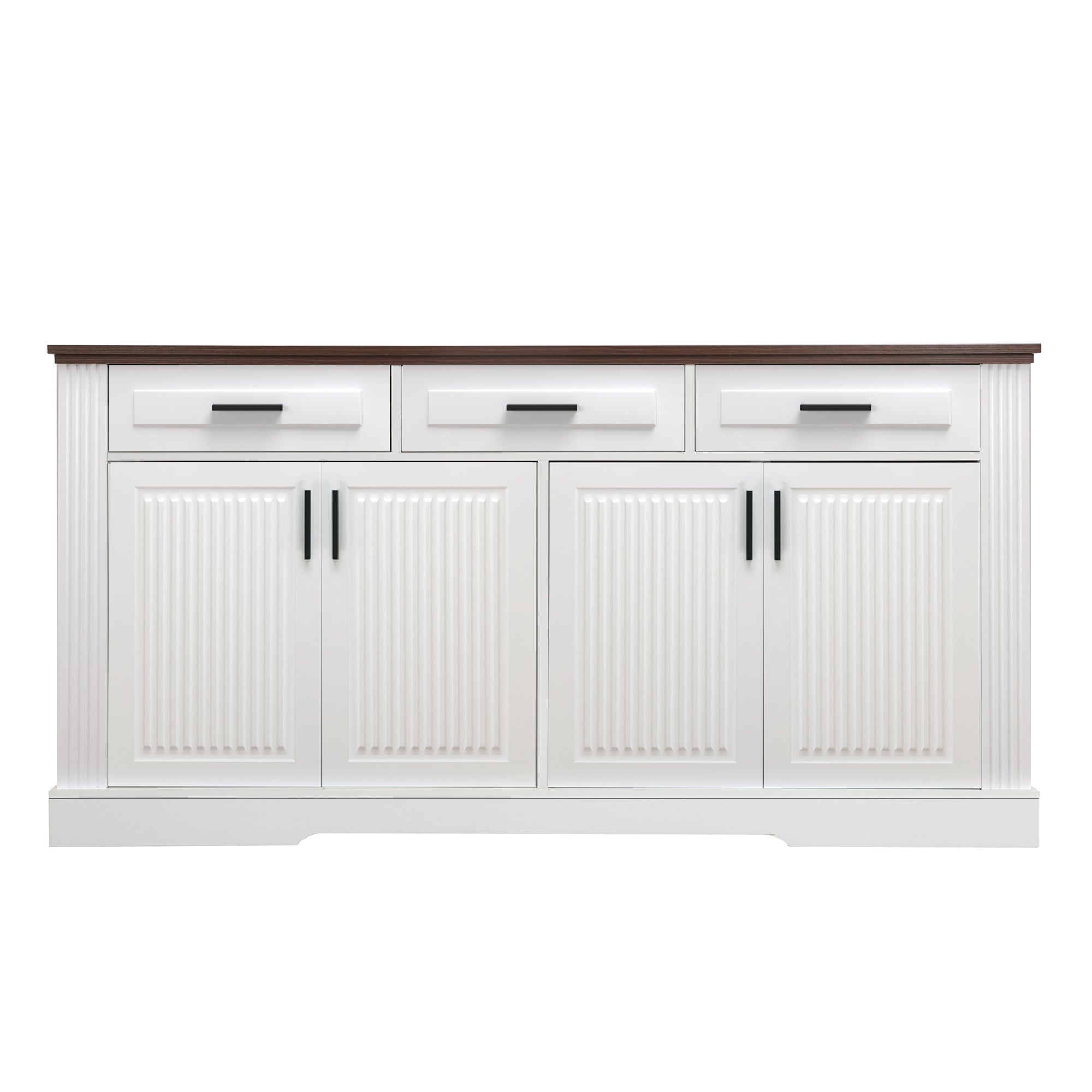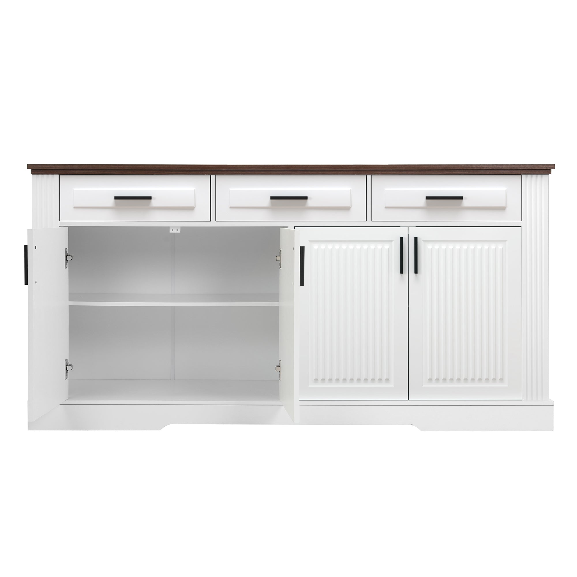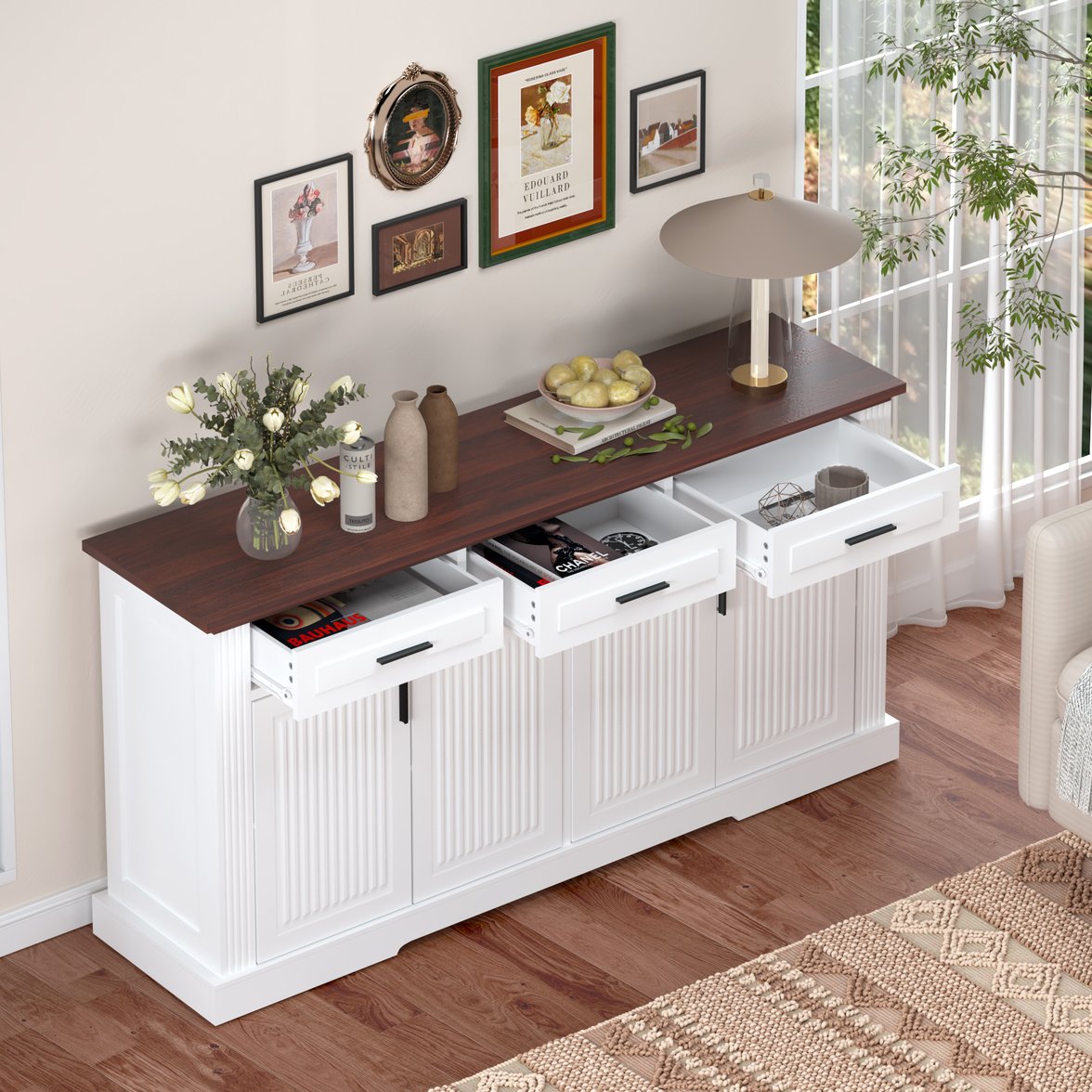 - 【Ample Storage with Functional Layout】Designed with 4 fluted cabinet doors and 3 spacious drawers, this buffet cabinet provides generous storage for dishes, utensils, small appliances, and pantry items. The large tabletop is perfect for displaying a coffee maker, microwave, or decor pieces.