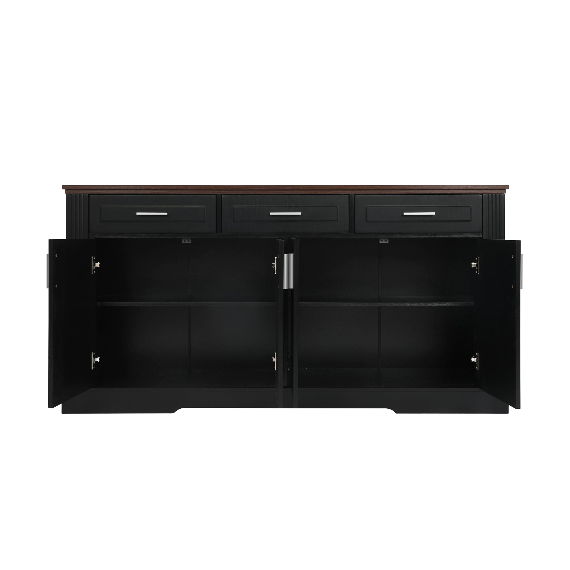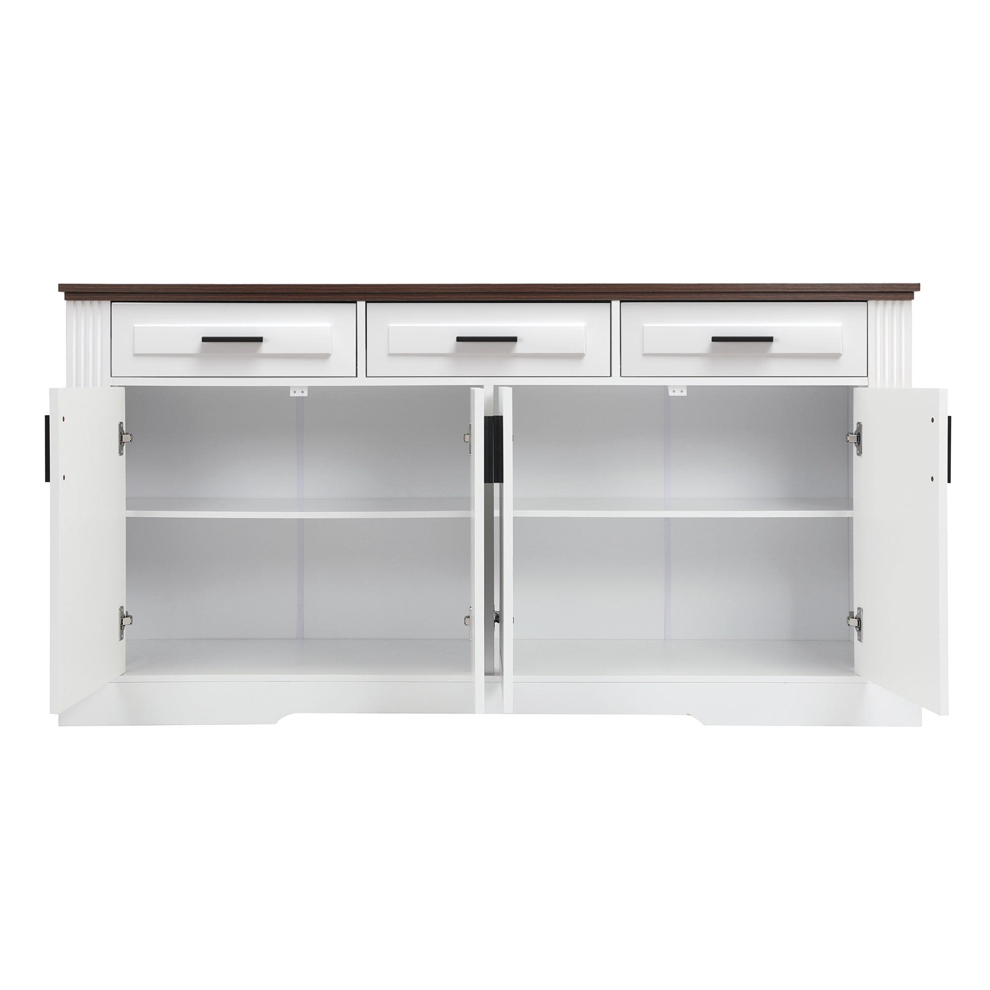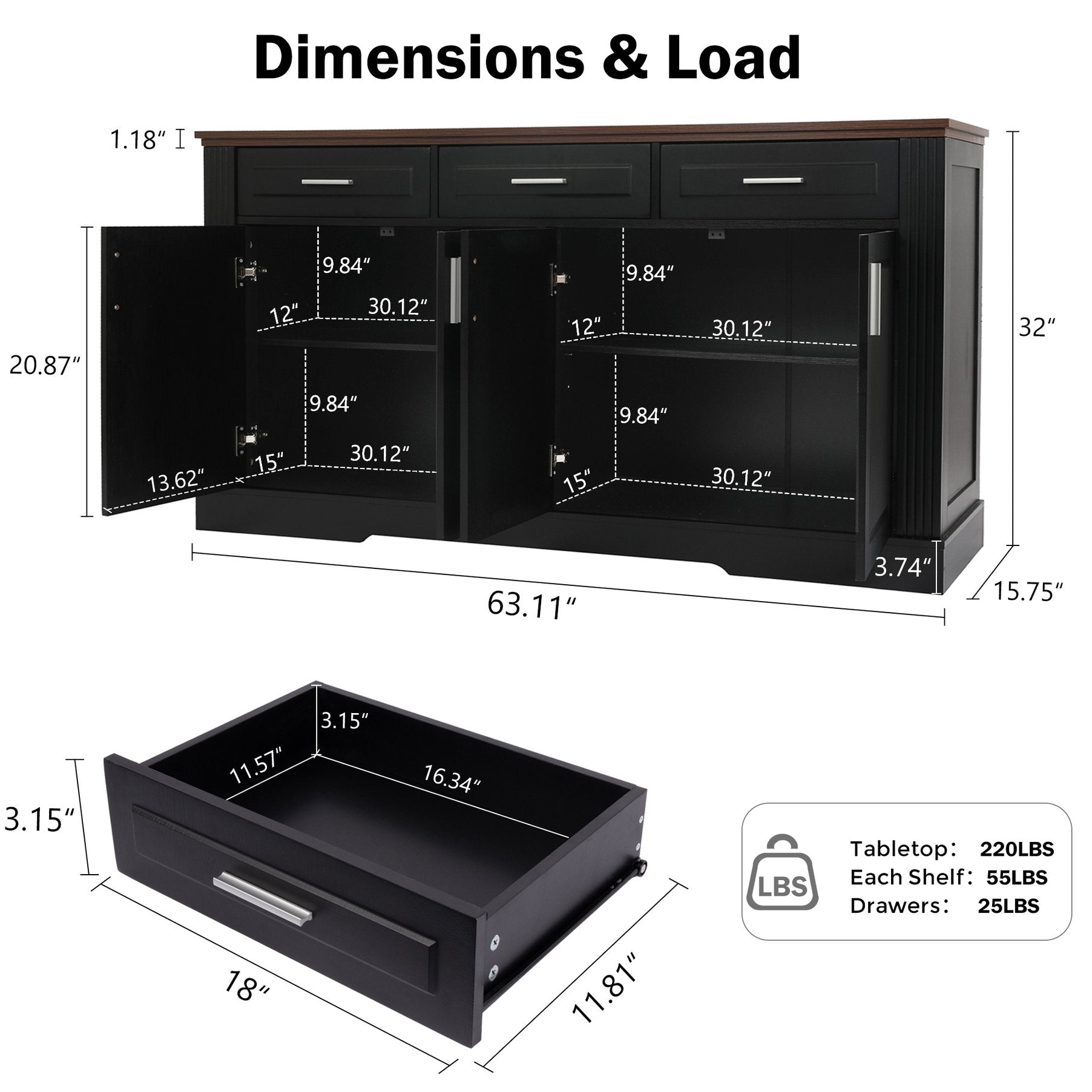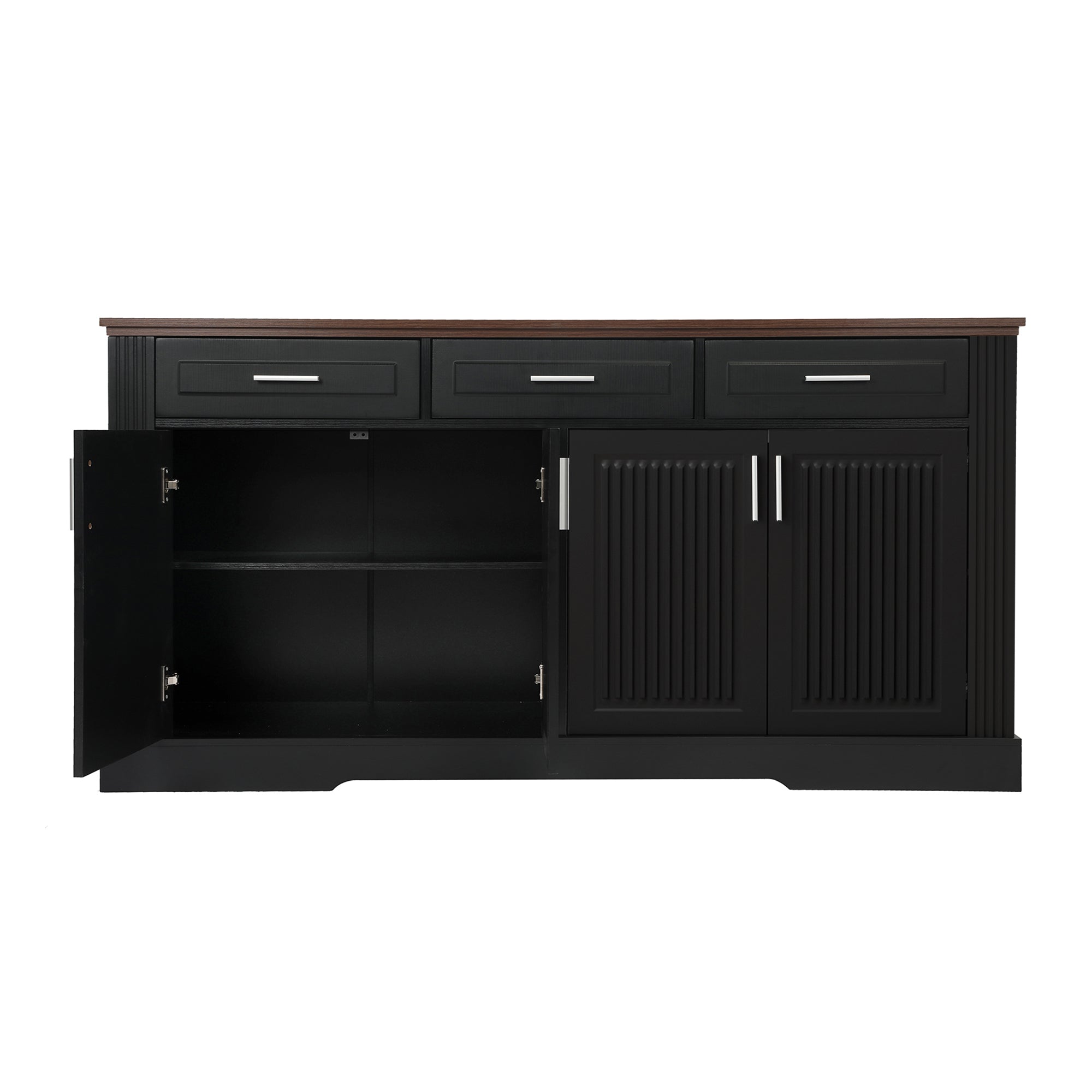 - 【Ample Storage with Functional Layout】Designed with 4 fluted cabinet doors and 3 spacious drawers, this buffet cabinet provides generous storage for dishes, utensils, small appliances, and pantry items. The large tabletop is perfect for displaying a coffee maker, microwave, or decor pieces.
