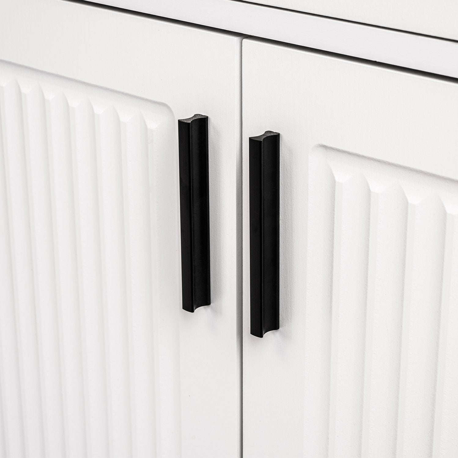 - 【Stylish Fluted Detailing & Sleek Hardware】The vertical fluted panels on the cabinet doors add rich texture and visual depth, bringing a handcrafted touch. The smooth black metal handles create a refined contrast, blending traditional charm with modern style to create a timeless, versatile design.