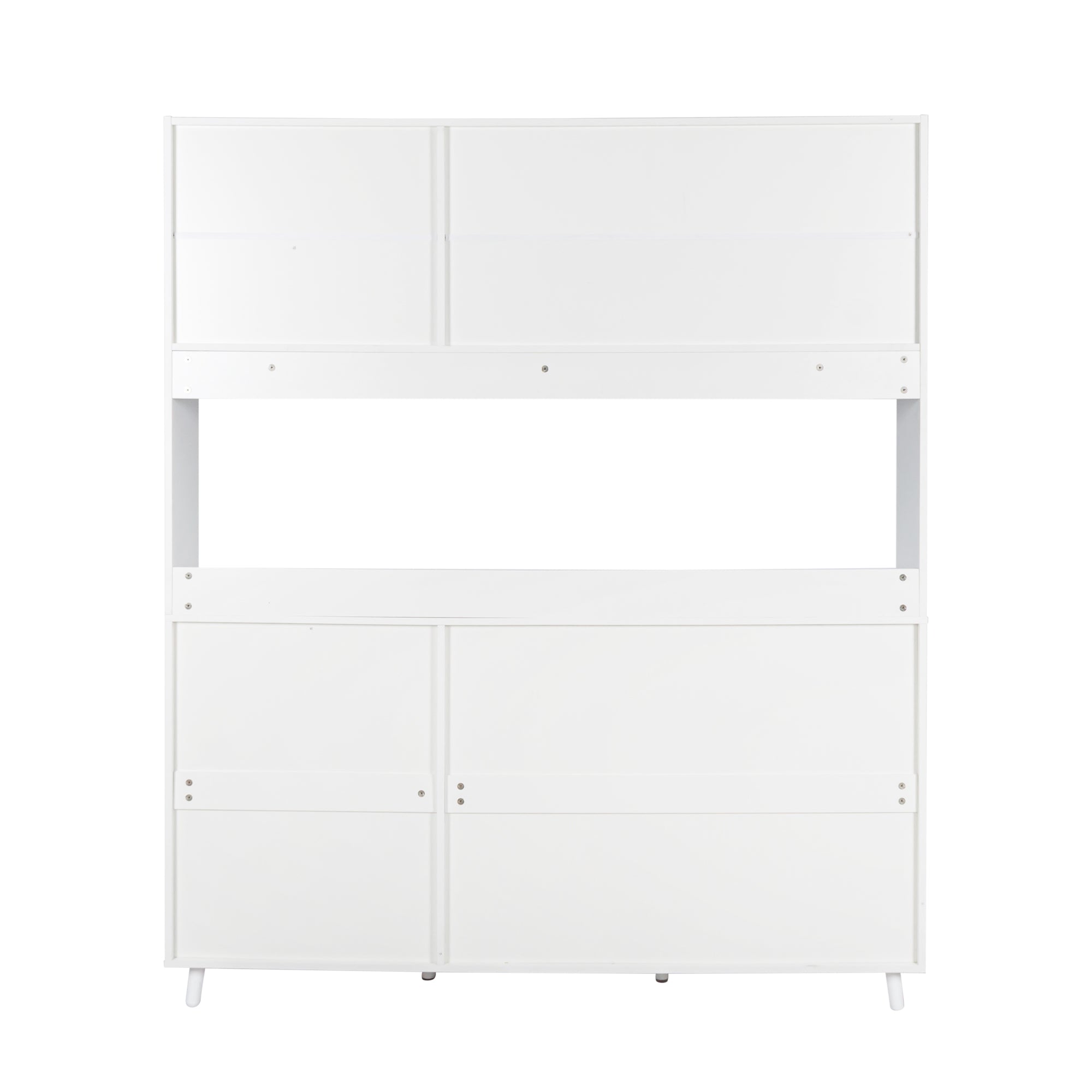 Upgrade your kitchen organization with this large freestanding hutch—designed to combine generous storage capacity with a clean, modern look. Thoughtfully arranged compartments, a dedicated microwave shelf with cable management, and a mix of open and concealed storage make it easy to keep cookware, dinnerware, and small appliances accessible yet neatly tucked away. Durable melamine-finished particleboard construction ensures low maintenance and long-lasting use across kitchens, garages, or office spaces.