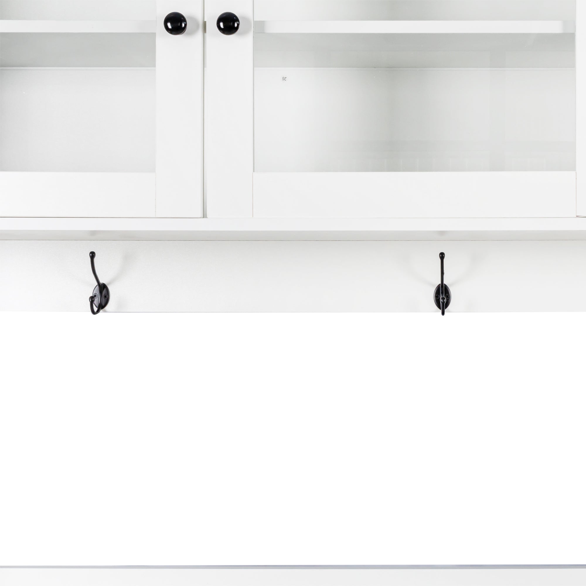 - Multi-layer organization: Combination of spacious shelves behind doors, drawers for smaller items, and hooks for utensils or kitchenware maximizes usable space
