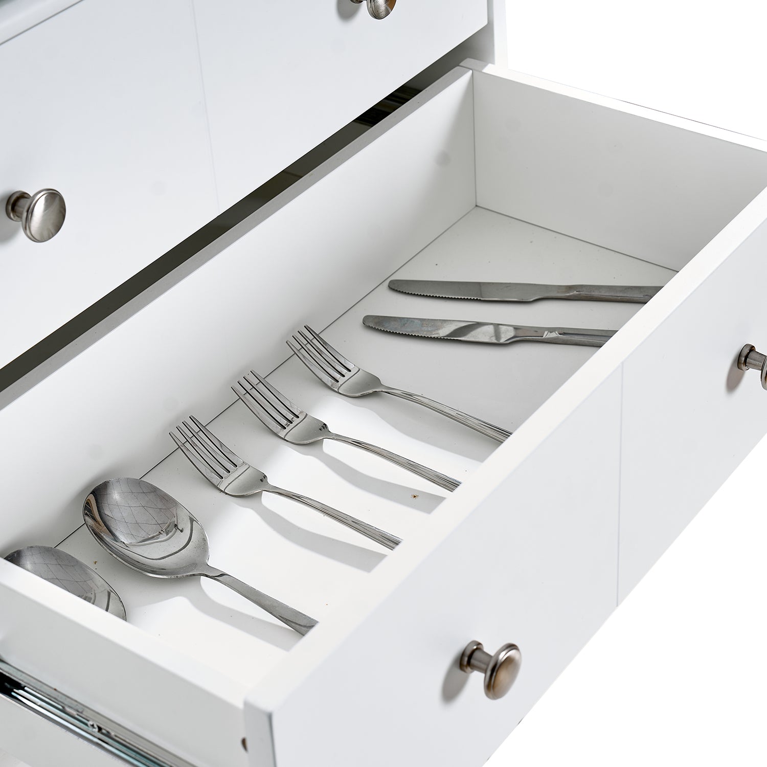 - Hardware & finish: Simple, coordinated handles, magnetic door catches, and metal drawer tracks ensure reliable daily use and a streamlined appearance.