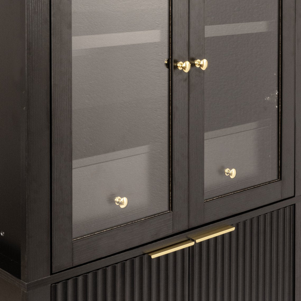 - Elegant Design: Featuring sophisticated vertical fluting and gracefully transparent glass doors, this pantry cabinet adds a touch of timeless charm and modern elegance to any room decor, seamlessly blending style with functionality.