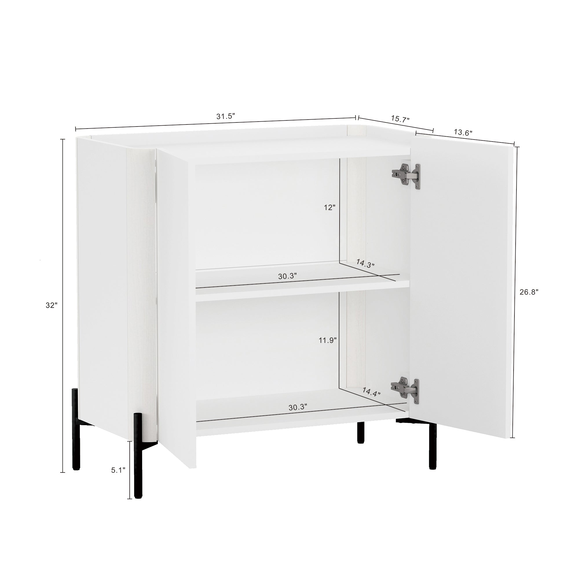 - Upon assembly, Accent Cabinet Dimensions Measure: 31.5 in. Length, 32 in. Height, 15.7 in. Depth.