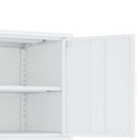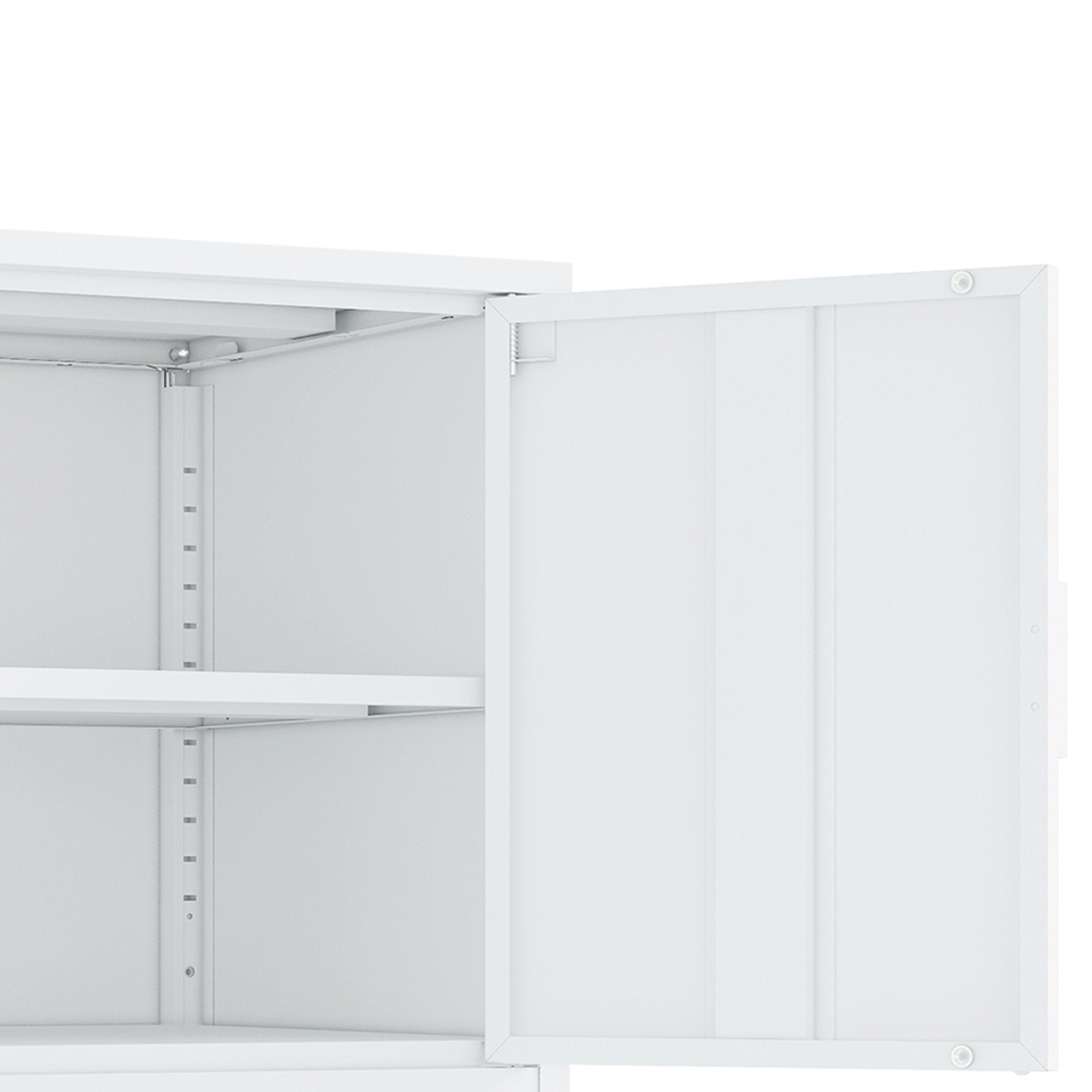 - Features 2 Standard Metal Doors with Vertical Metal Handles.
