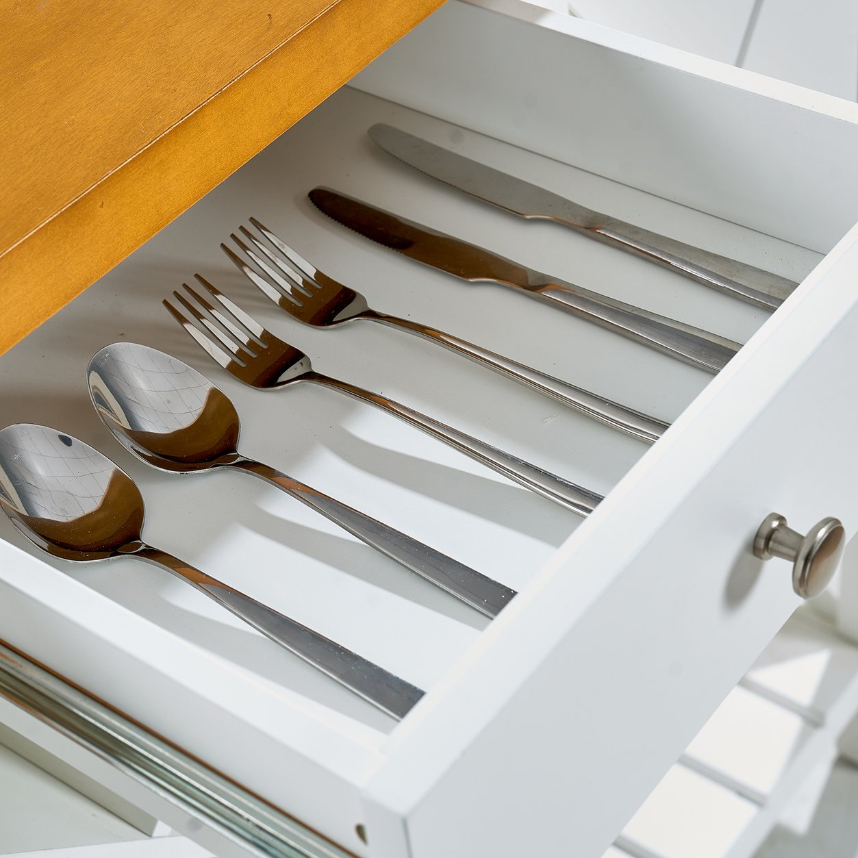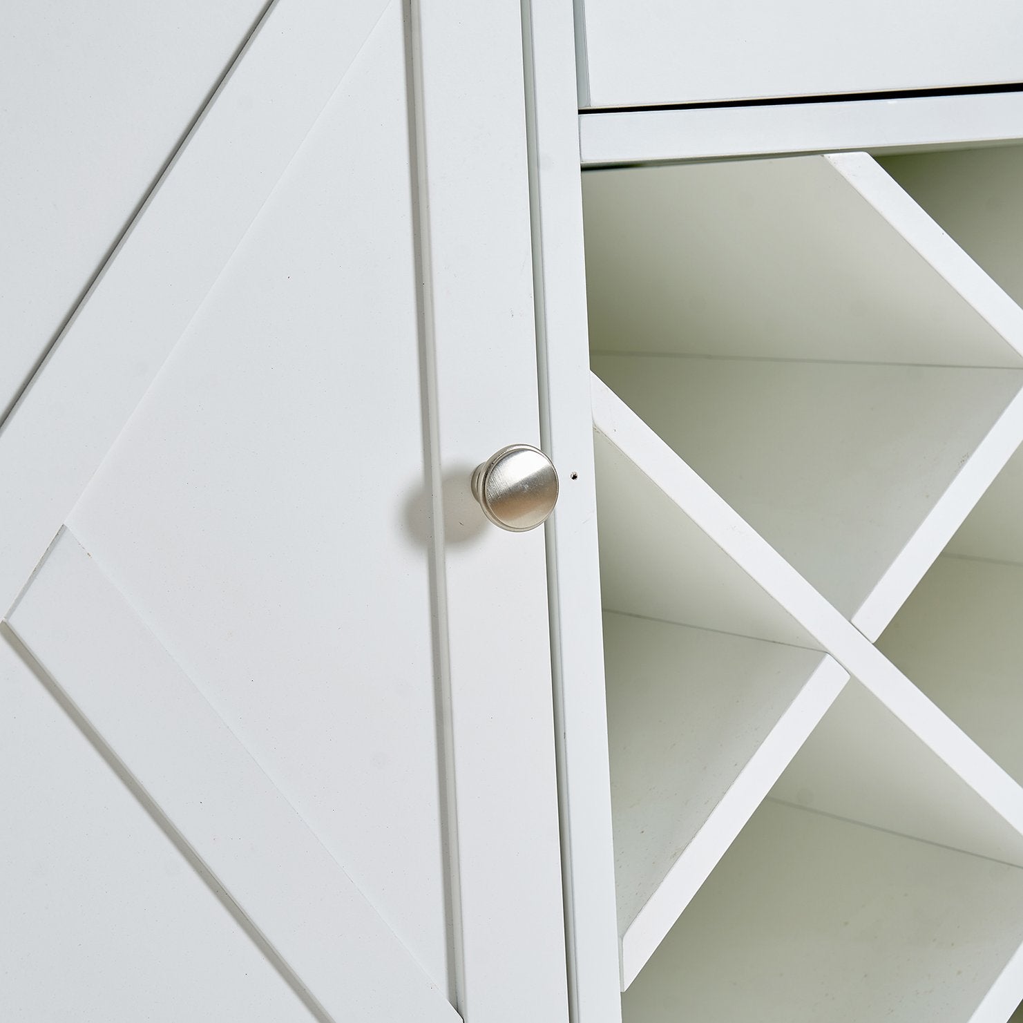- Storage Configuration: Spacious tabletop, one handy drawer, a two-door cabinet with integrated wine rack, and a large bottom shelf—combines closed and open storage for versatile organization.