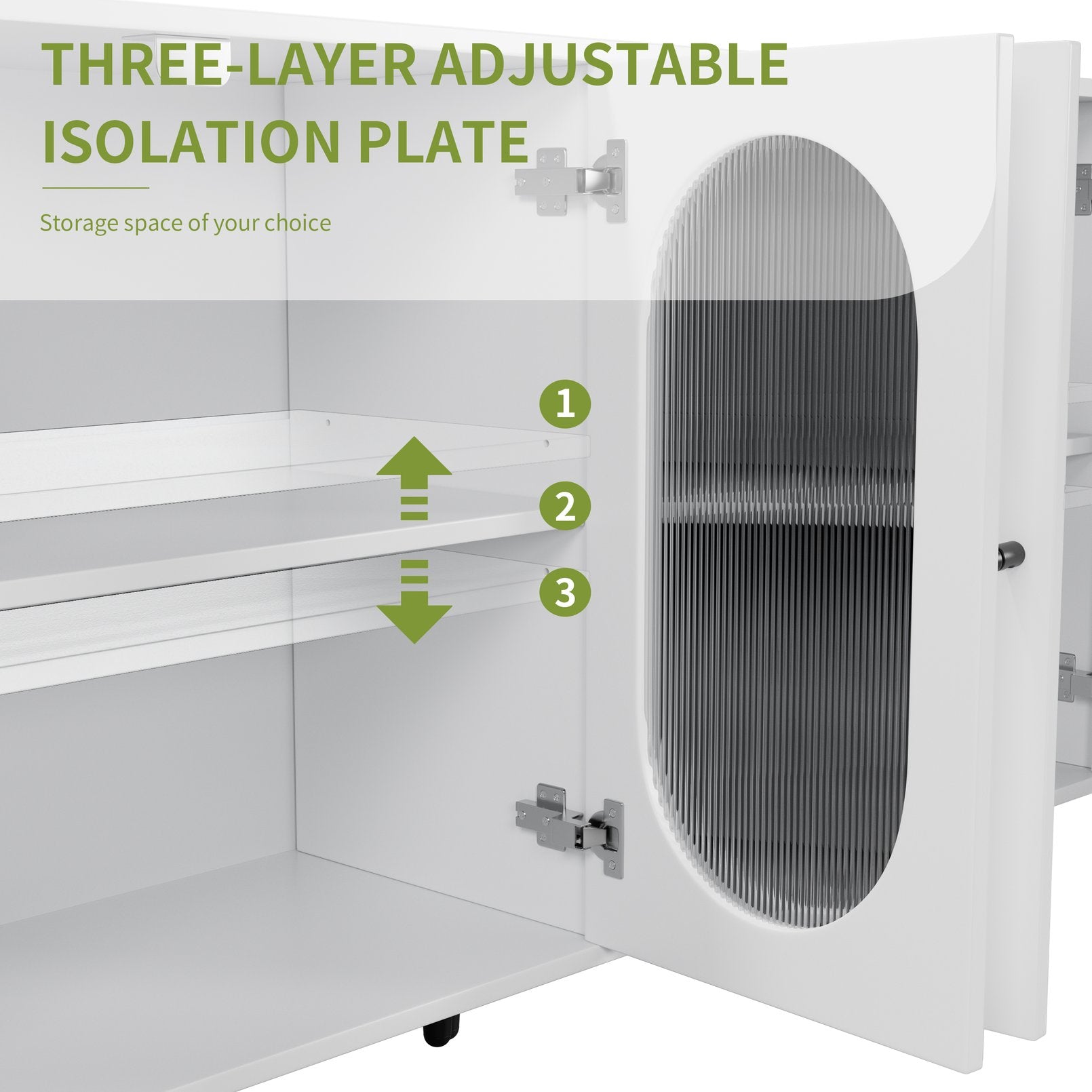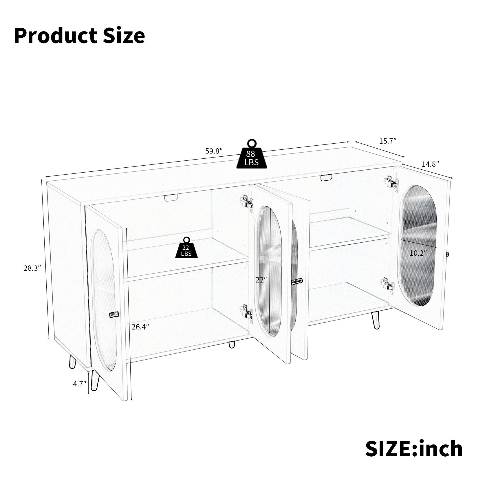 Keep your entryway, dining room, or living space neat and stylish with this versatile buffet cabinet. Designed for everyday use, it combines roomy concealed storage with a clean, modern look. Four spacious compartments with removable shelves let you organize dishes, linens, pantry items, or miscellaneous household essentials while the durable construction and reinforced metal legs ensure long-lasting stability and support.