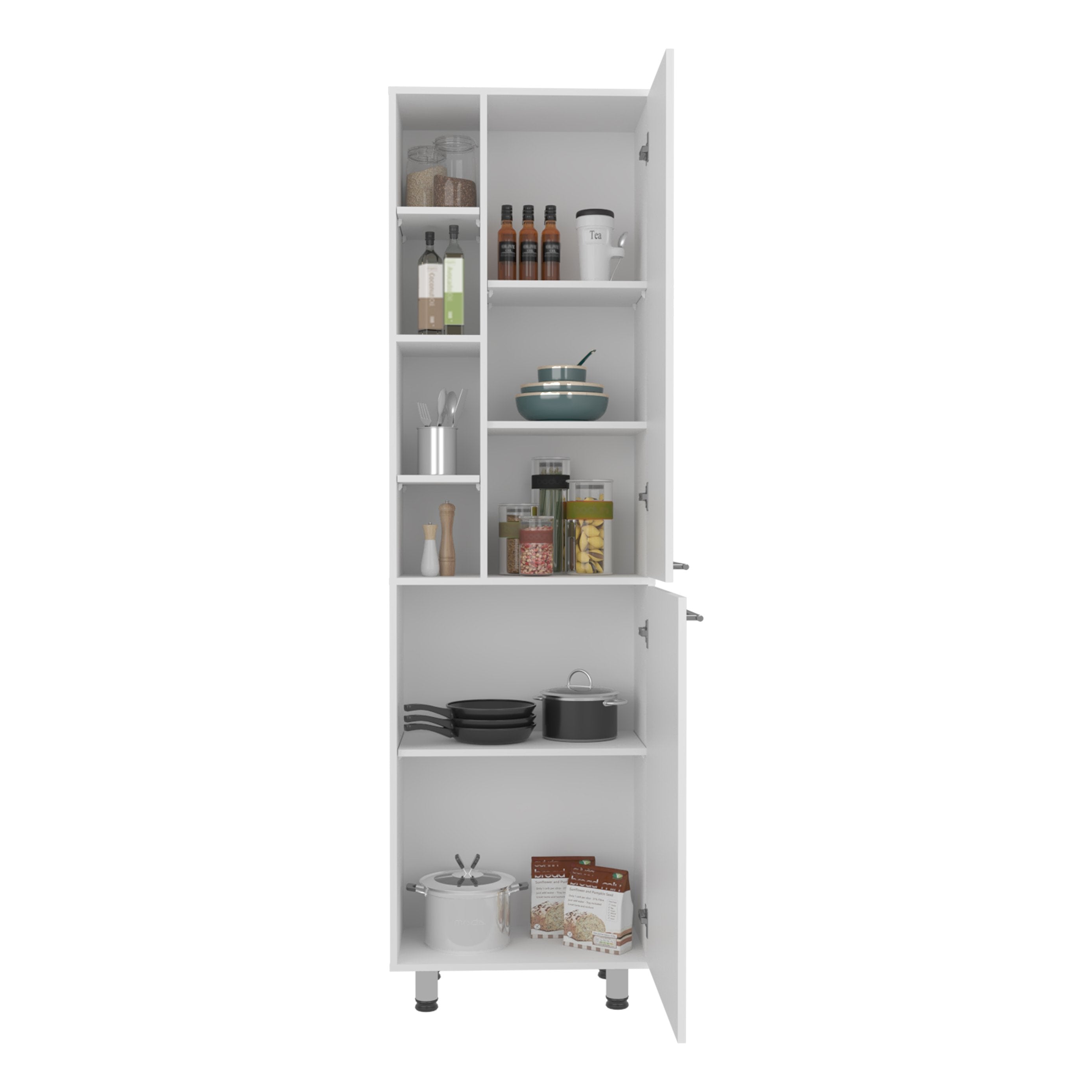 Bring order and style to your kitchen with the Burton Pantry — a compact, modern storage cabinet designed to maximize organization without sacrificing aesthetics. Its clean white finish and durable engineered wood construction make it a versatile addition for small kitchens, laundry rooms, or pantry corners, while adjustable shelving and side storage keep essentials accessible and neatly arranged.
