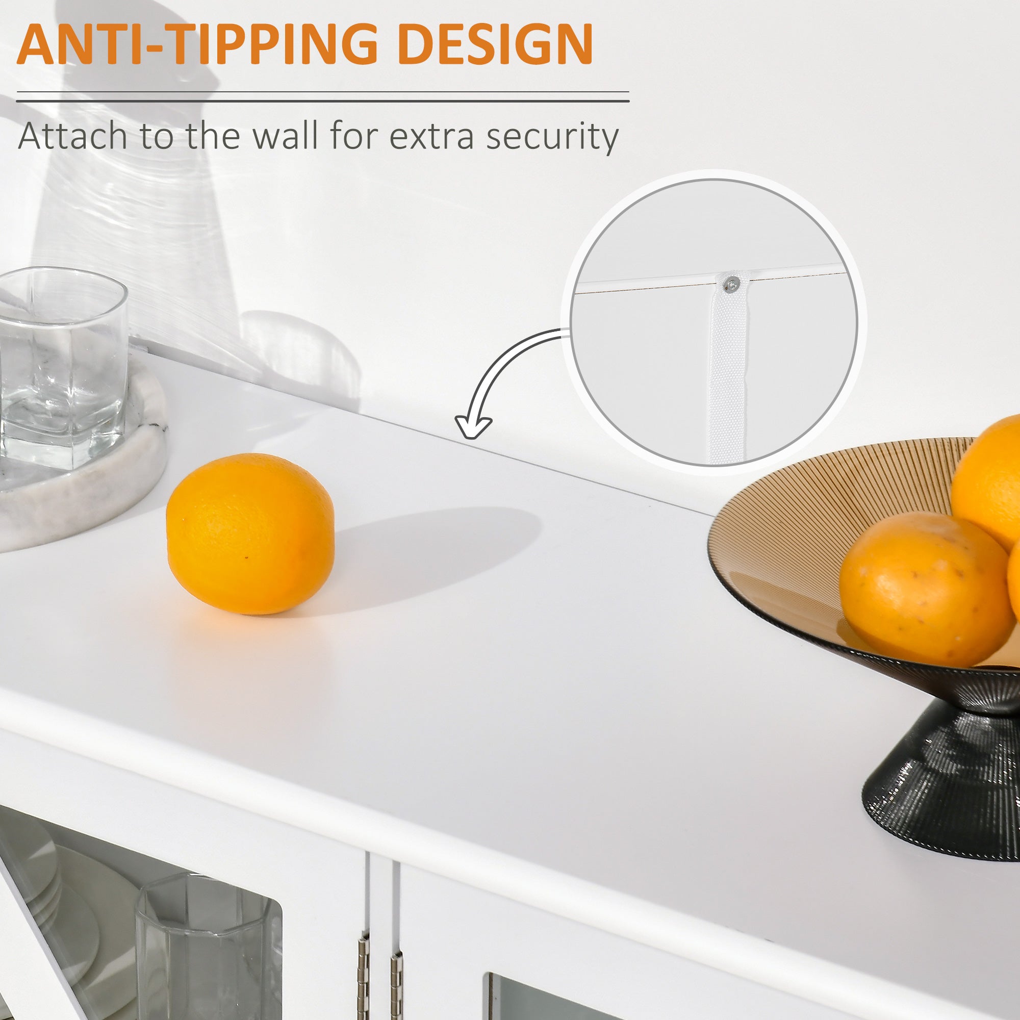Bring organized, elegant storage to your dining room, living area, or entryway with this versatile white sideboard. Combining tempered glass doors with a durable MDF frame, it offers a clean, contemporary look while keeping everyday items visible and protected. Use it as a buffet, media credenza, or bar cabinet—the adjustable interior shelves let you tailor the space to plates, glassware, books, or decorative items.