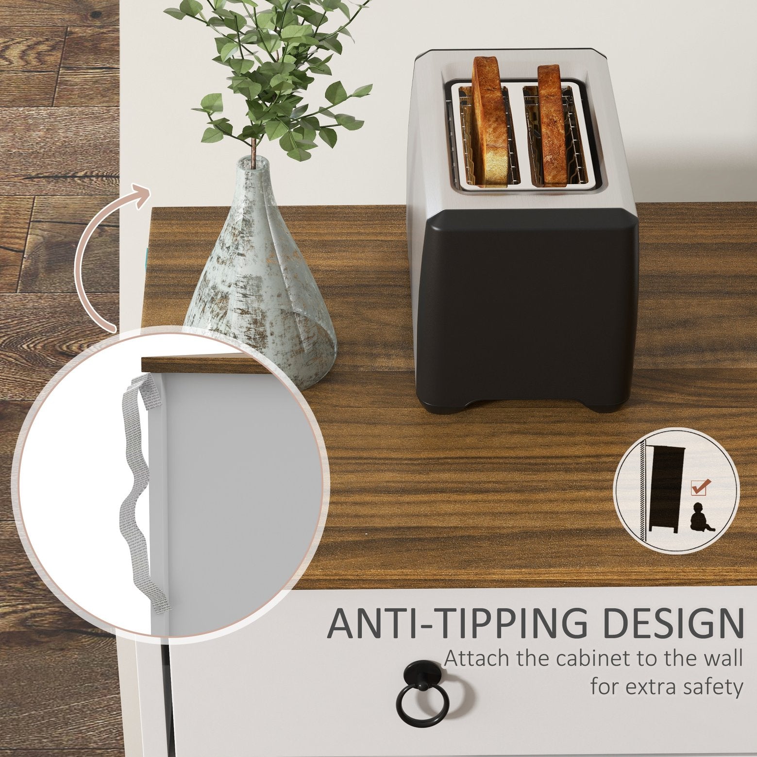 - Safe and Clean: An anti-tipping design is included to attach our buffet cabinet with storage to the wall. Made with a solid particleboard frame, the smooth surface is water protect and easy to wipe when spills occur.