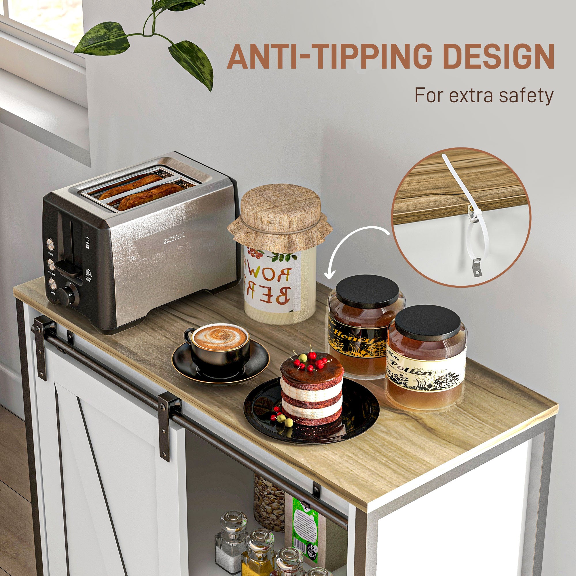Bring farmhouse charm and practical storage to any room with this versatile sideboard. Its sliding barn door and mixed white-and-brown finish create a warm, rustic focal point while the sturdy metal frame and adjustable shelving deliver functional organization for kitchens, dining areas, living rooms, or home bars.