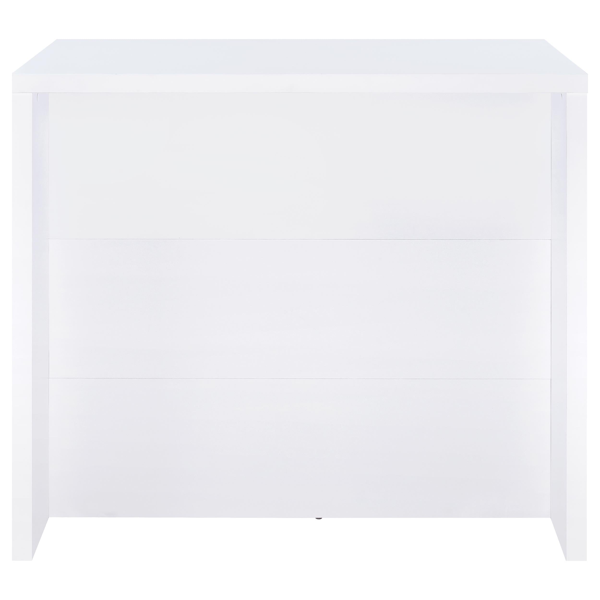 - Home bar showcases a bright white finish that delivers a clean, modern aesthetic ideal for contemporary settings