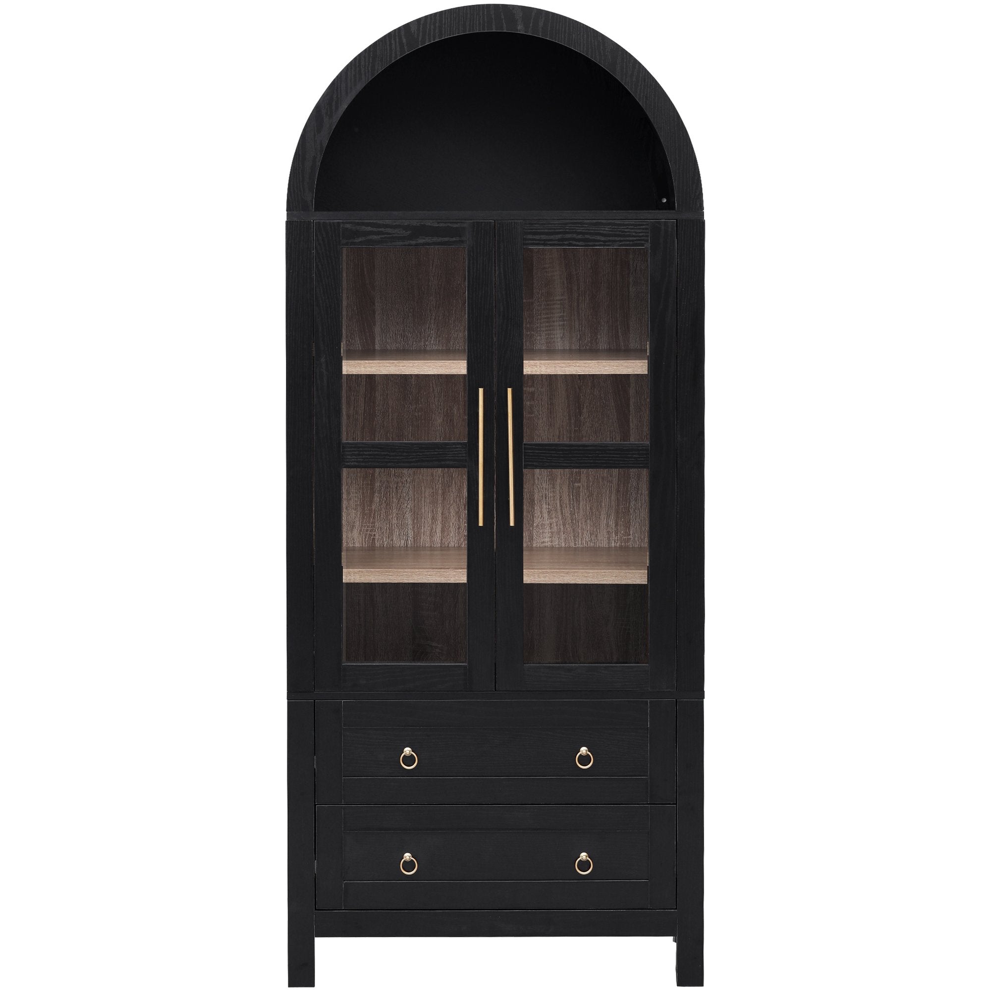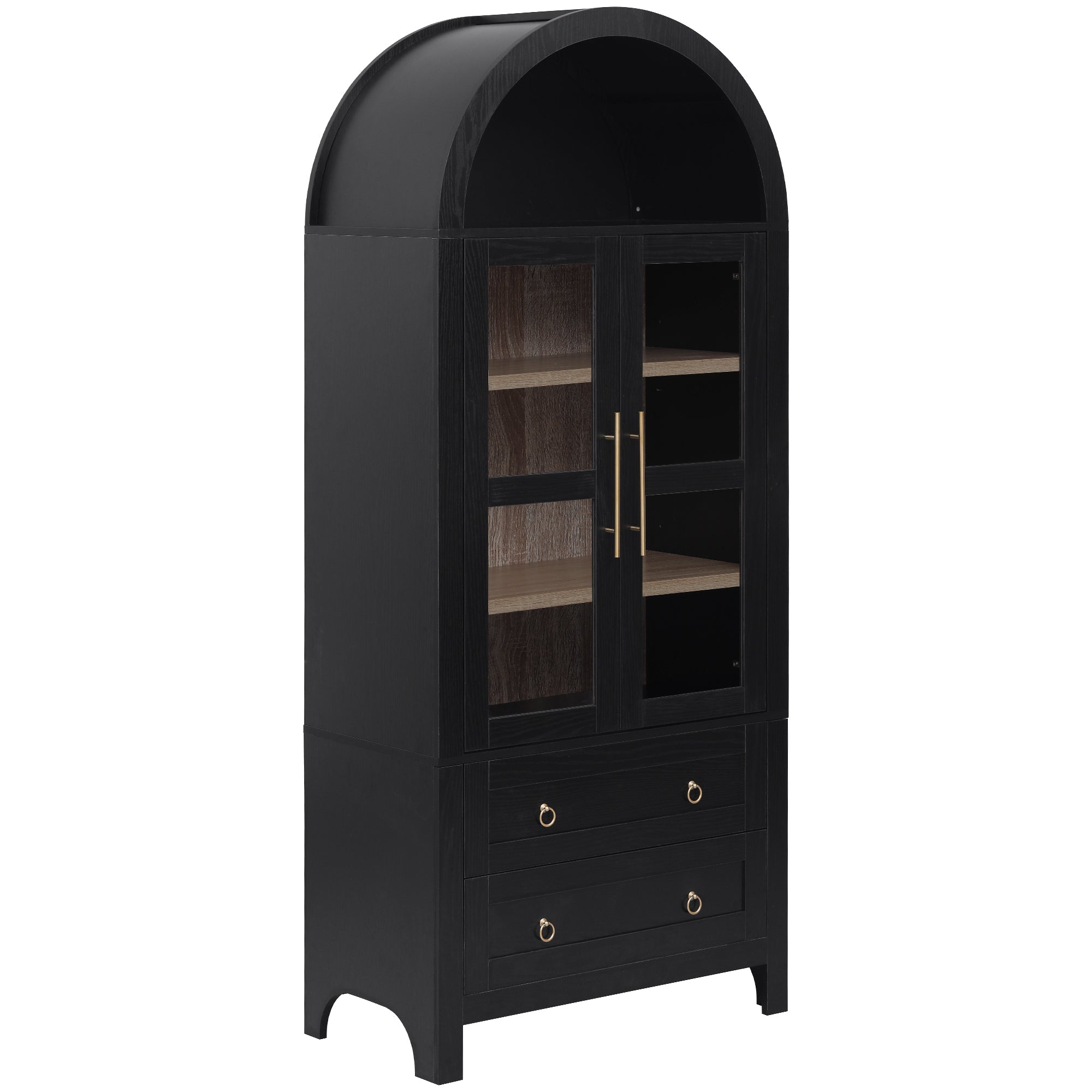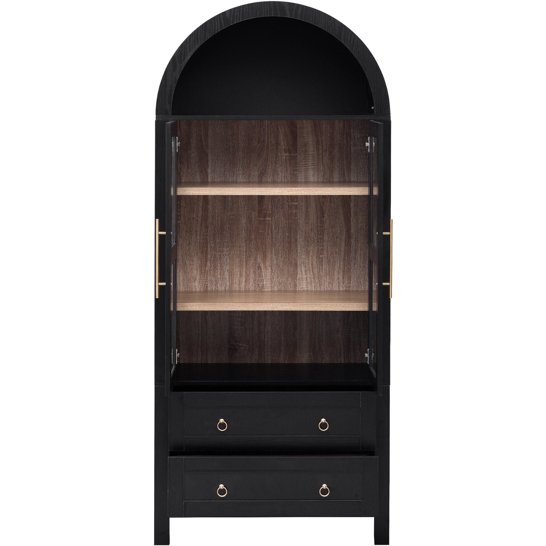 - [Ample Storage Space] Measuring 71"H x 30"W x 15.75"D, this arched storage cabinet with adjustable shelves and two spacious drawers provides ample space for your essentials. The drawers provide individual storage space for items, while the adjustable shelves allow you to customize the height for different storage needs. Whether you're displaying everyday items or hiding clutter, this storage cabinet ensures your room is clean and tidy.