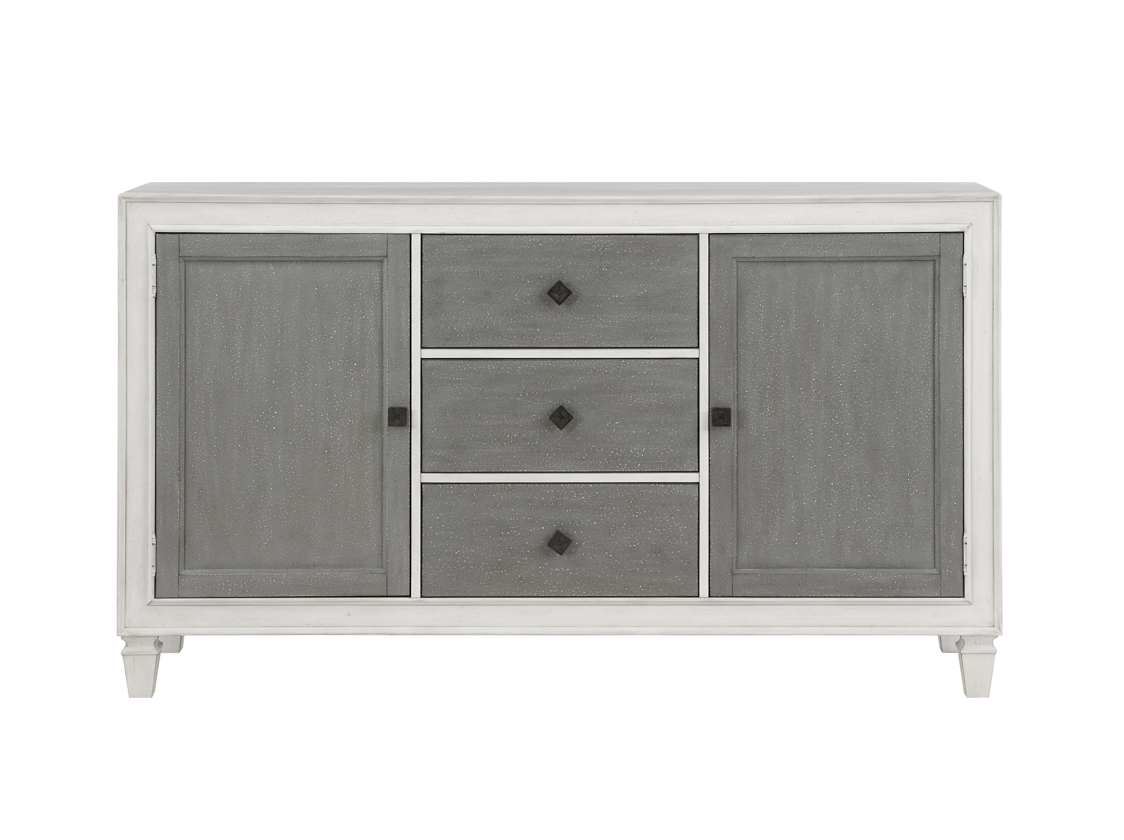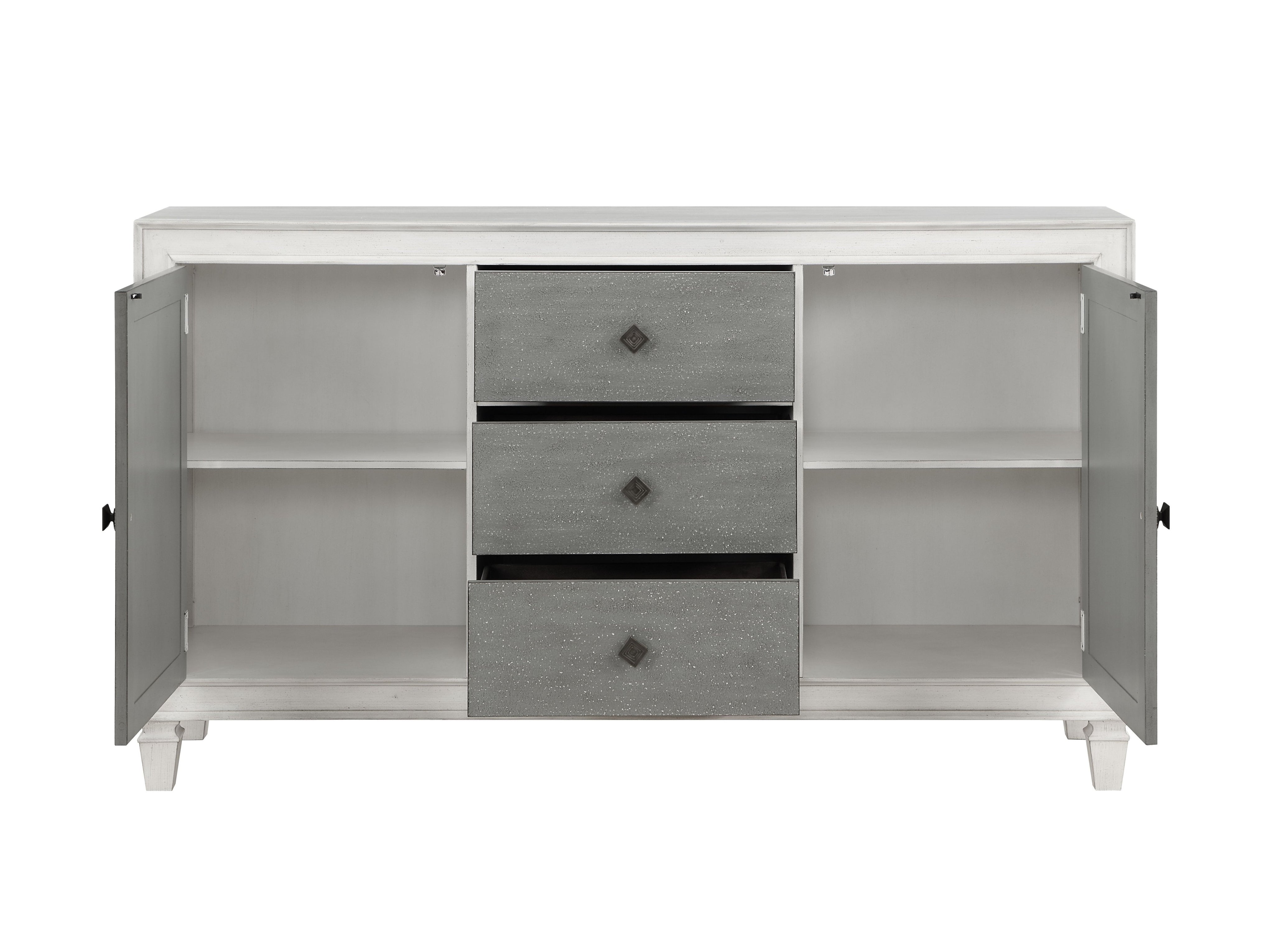 Bring farmhouse charm and practical storage to your dining or entertaining space with this rustic gray and weathered white finish server. Combining classic lines with durable construction, it offers organized storage for dinnerware, linens, and serving pieces while providing a sturdy surface for display or buffet service.