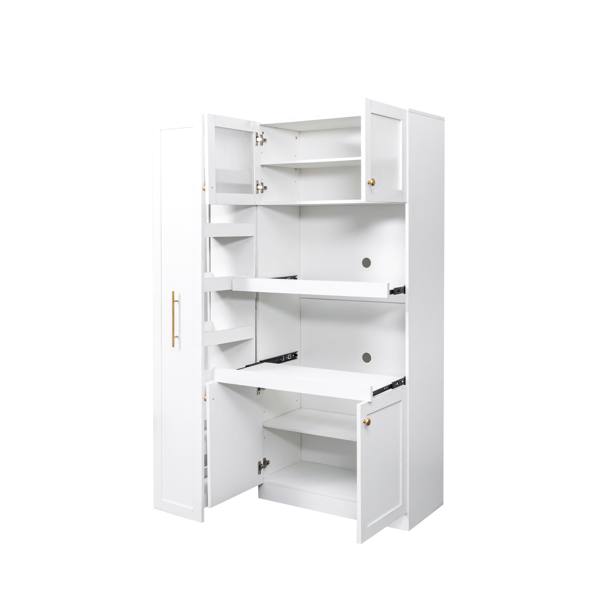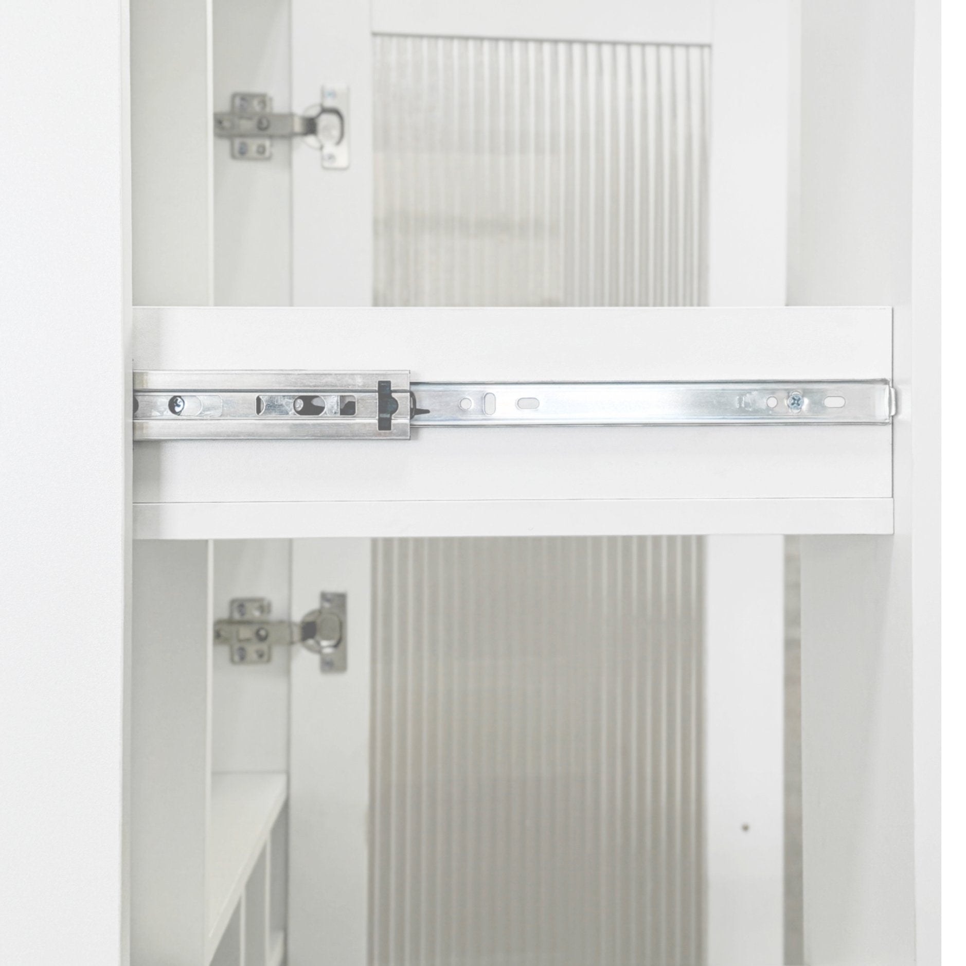 - Expandable, multi-tier pull-out: Left-side pull-out shelf features 7 storage layers for spices, jars, or small appliances; glides smoothly on full-extension ball-bearing slides for complete visibility and access.