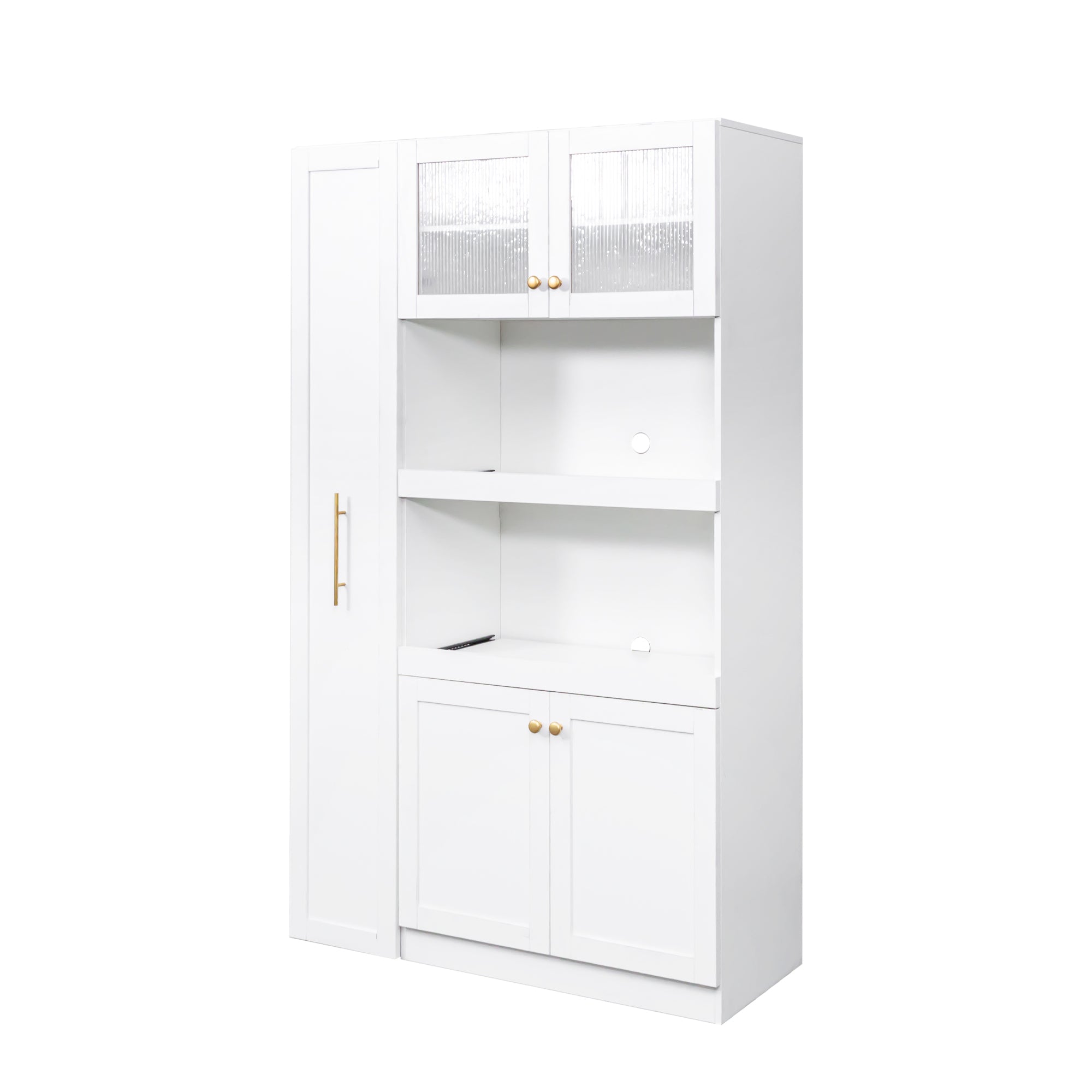 Keep your kitchen, dining room, or craft area organized with a versatile farmhouse-style pantry cabinet that combines roomy enclosed storage with an intelligent pull-out shelving system. Designed for easy access and everyday durability, this cabinet transforms deep, hard-to-reach corners into neat, usable space—ideal for canned goods, cookware, appliances, or pantry staples.