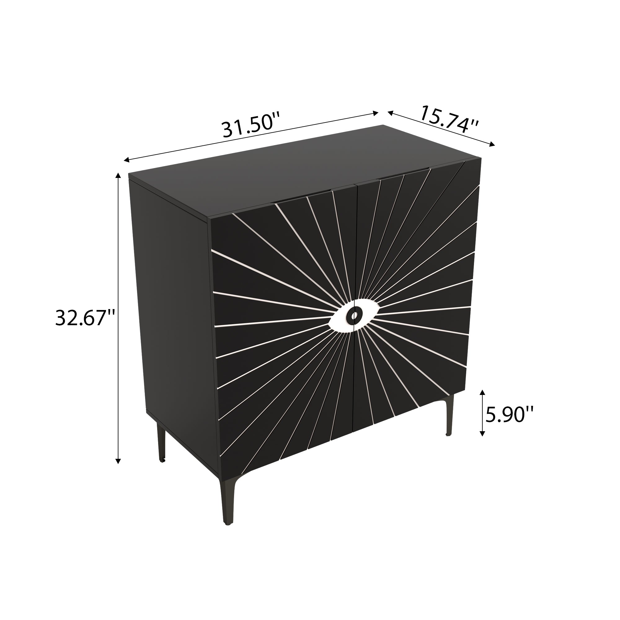 Elevate your storage with a stylish, mid-century inspired accent cabinet that combines form and function. This two-door wooden cabinet features a striking eye pattern finish and adjustable shelving to keep your living spaces organized while adding a designer touch to kitchens, living rooms, dining areas, or hallways.